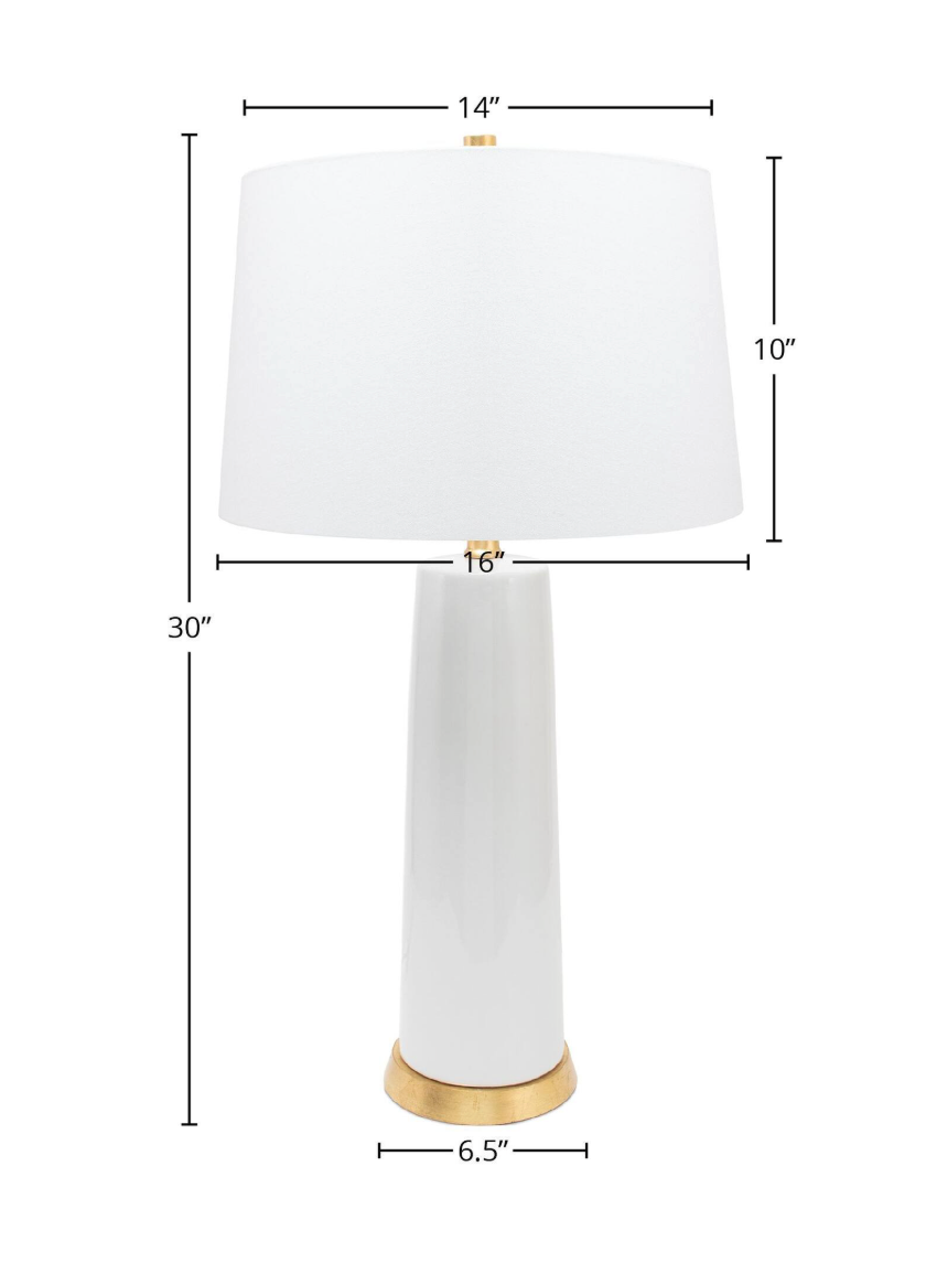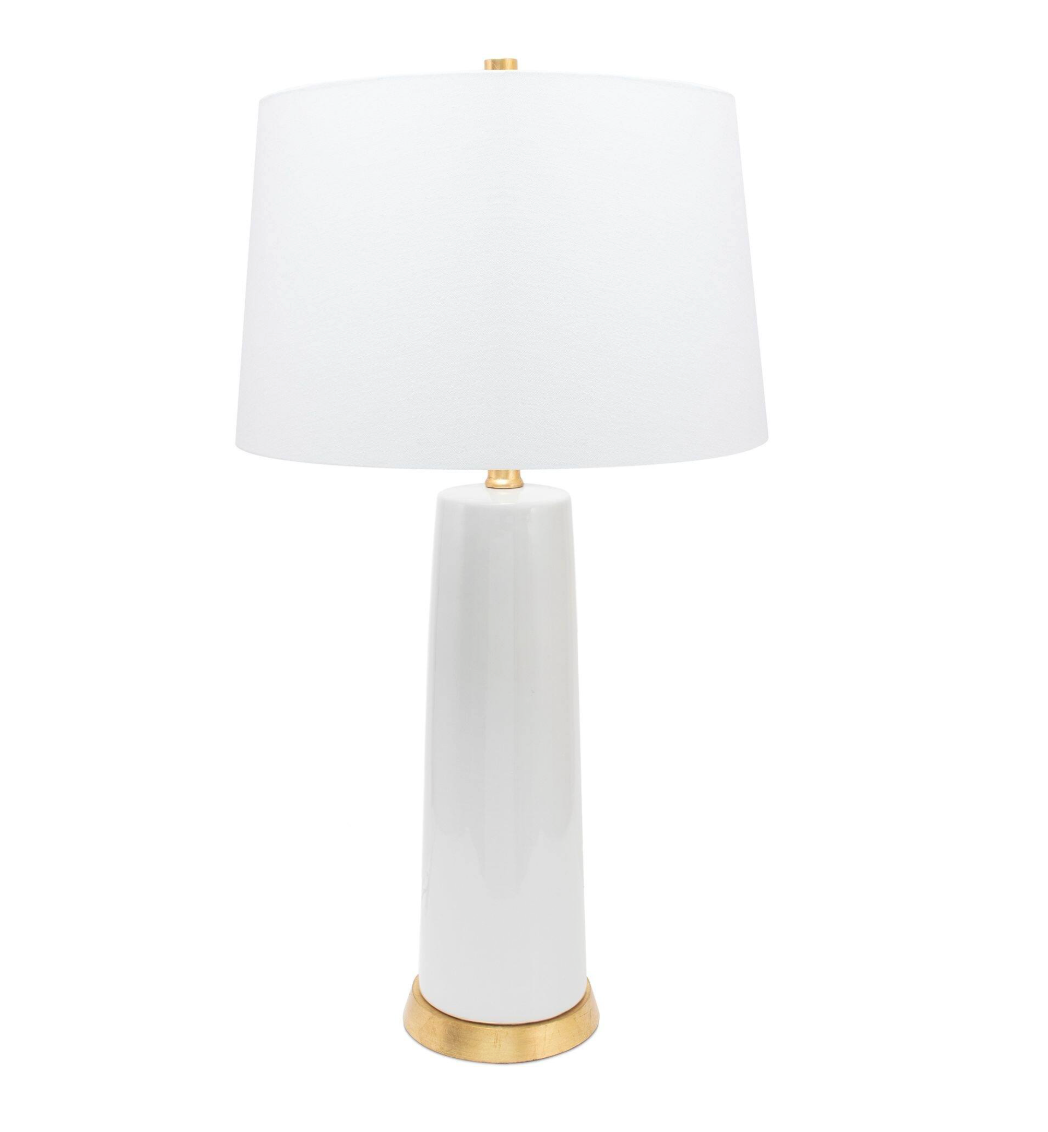 Light up any space with a fundamental ornament piece like the Tansey in classic color options including bright white or gray. Ceramic adorned with luxe gold leaf hardware. This quintessential piece adds a luxurious, chic touch in any room. Our Casual linen white shade with subtle slub texture compliments the lamp base.Its tapered shape and timeless white color ensure it fits with every decorating style.