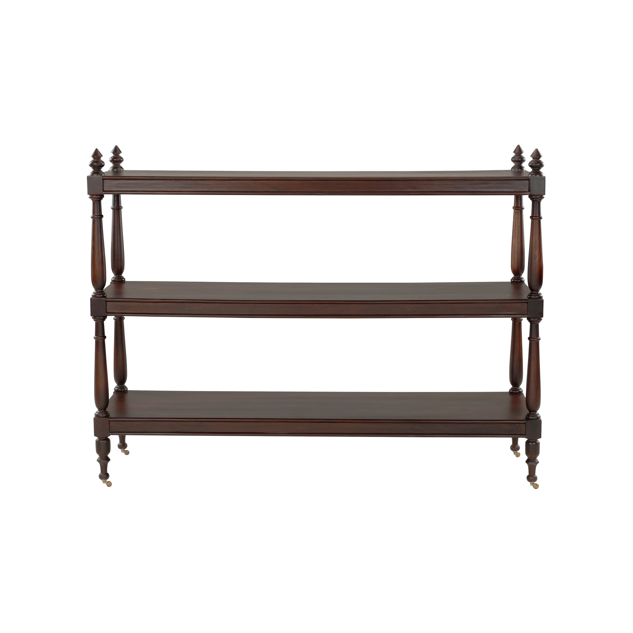 • Crafted from rich mango wood, the cart features three spacious open shelves, offering ample open storage for your favorite beverages, glassware, and bar essentials. The natural wood grain adds warmth and character, while the sleek brass wheels provide a touch of elegance and easy mobility. Ideal for entertaining or simply adding a stylish storage solution to your space, this bar cart combines practicality with a sophisticated design, making it a standout piece in any home.