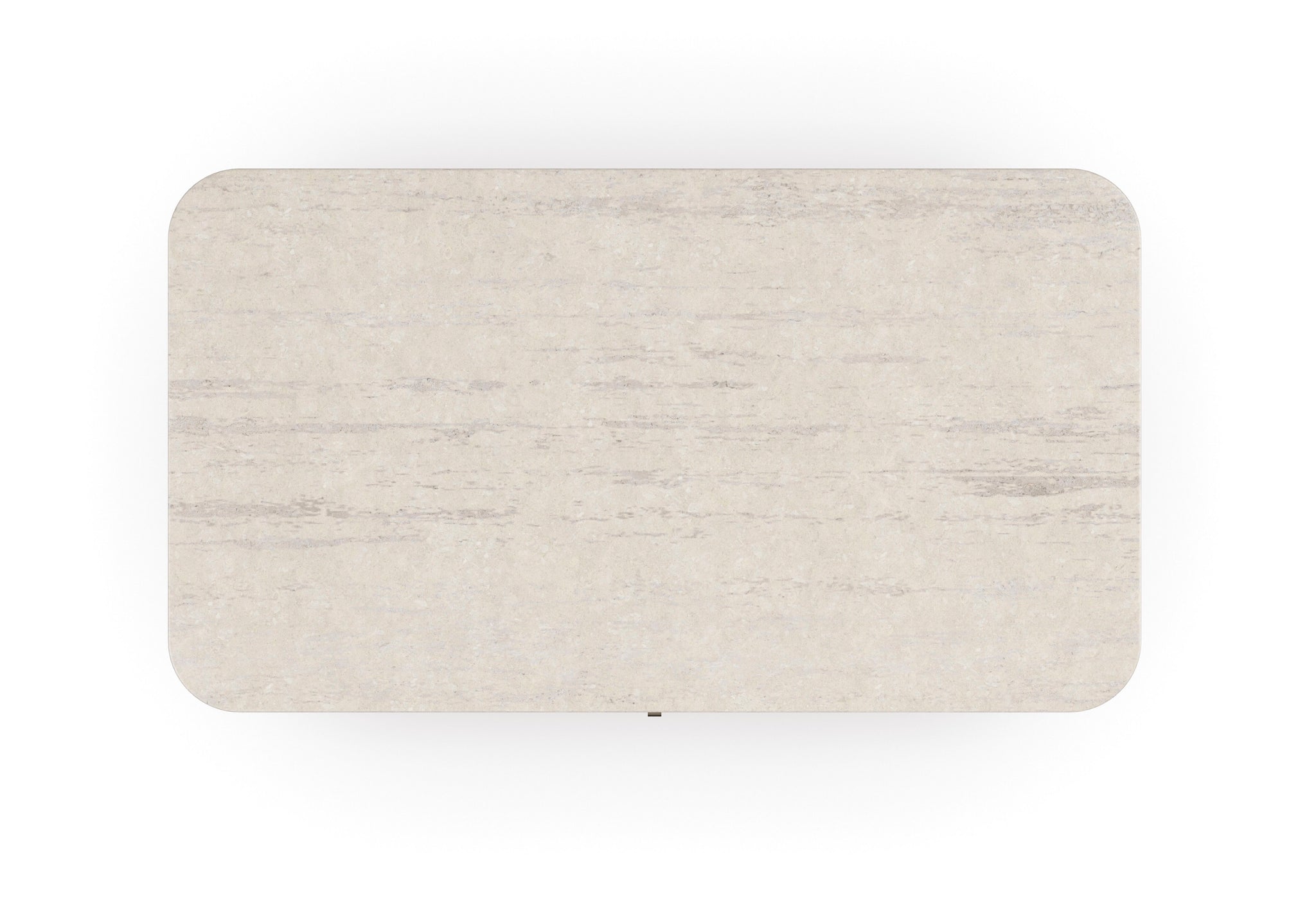 • The natural beauty of Sun-Drenched oak and a creamy Travertine stone top is punctuated by the visual rhythm created by reeded drawer fronts. Rounded corners and bronze drawer pull with a subtle contour soften its linear form and add a touch of warmth. Features Linen-painted drawer interiors and access along the back for wire management.