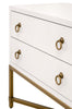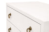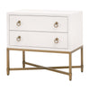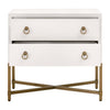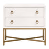 • This gorgeous and one-of-a-kind Strand Shagreen Nightstand by Essentials For Living will brighten up your bedroom with its pearl white finish. This unique nightstand mimics natural shagreen skin. Its textured finish is made of a faux shagreen resin on top of acacia wood and plywood. The shagreen finish includes seams for a very natural look, just like real stingray skin. The base is constructed of steel shaped in an "œX" design with an elegant, brushed gold finish. It measures 32" wide, 19" deep, and 30" high and features two storage drawers with matching brushed gold ring pulls for ample storage space. The light colors will complement many styles and interior designs, making this nightstand an ideal choice to complete your bedroom or guest room.