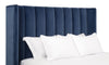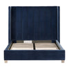 • Elevate your bedroom with the regal charm of the Chandler Queen Bed by Essentials For Living. This transitional piece features an upholstered frame with a luxurious denim velvet and exposed solid oak feet with a natural gray finish. The darker tones create an inviting atmosphere for rest and relaxation. Measuring 71.25" wide, 87" deep, and 61.75" high, it will support a standard queen mattress. This bed boasts an elegant wing headboard design, accented by vertical channel stitching and edge piping detail. The removable metal frame European slat system ensures stability and will work with a box spring. Bring a touch of refined elegance and easily enhance your bedroom with this exquisite bed.
