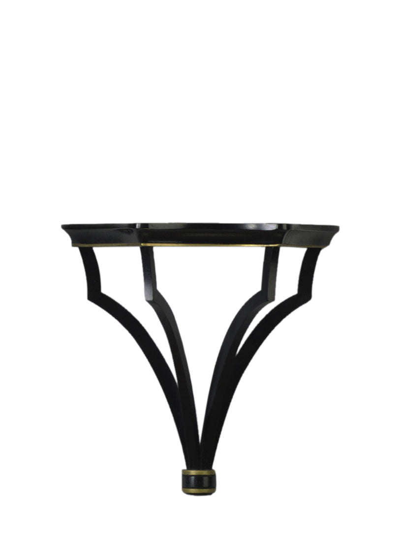 • Sheraton bracket is a black wooden shelf with gold trim that blends with any design style. Use this versatile 12" wall shelf to highlight your favorite accent pieces.