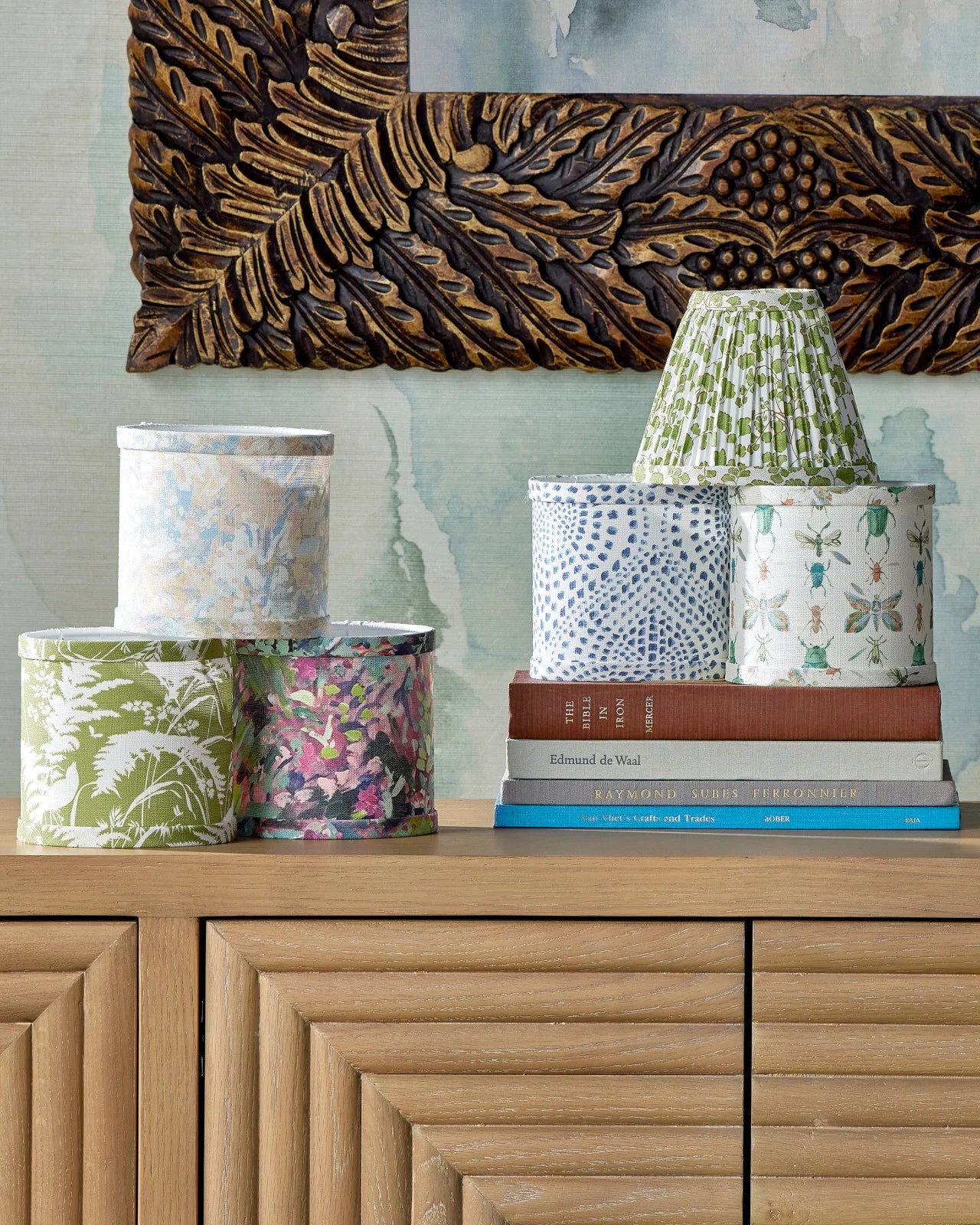 Wood Console With Raffia Covered Doors, Two Shelves And Gold Leaf Finished Hardware. Not Intended...