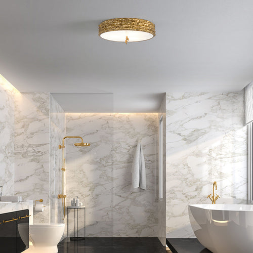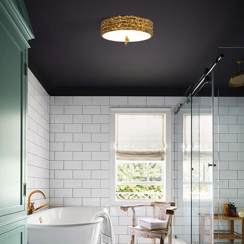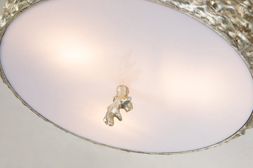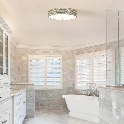Flush mount is made of metal and glass Overall dimensions: 14" X 14" X 6.5"H...