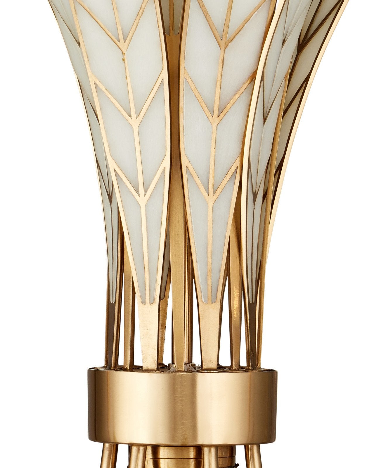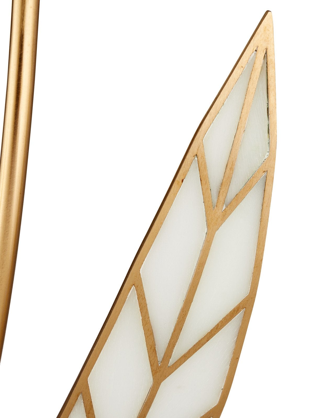 • Furling leaves inspired by lotus flower, with antique brass edges and off-white composite interiors.
