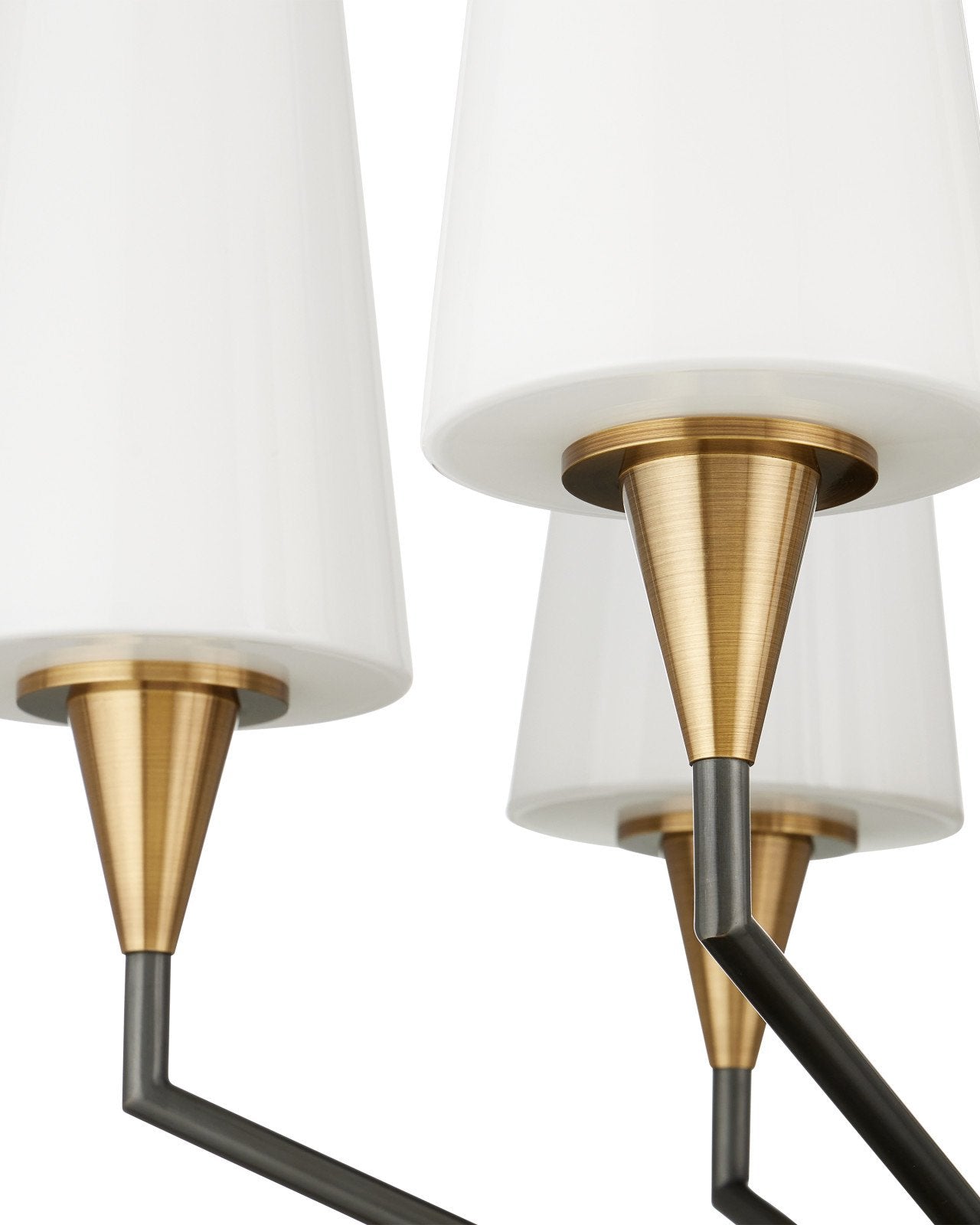 • The Currey & Company Hennin Chandelier takes its cues from Mid-Century modern design with a striking angular frame in an oil-rubbed bronze finish. Adjustable from 42" to 110" with use of included chain/rod kit/cable. If your space calls for a longer drop, additional chain/rods/cable is available for purchase.