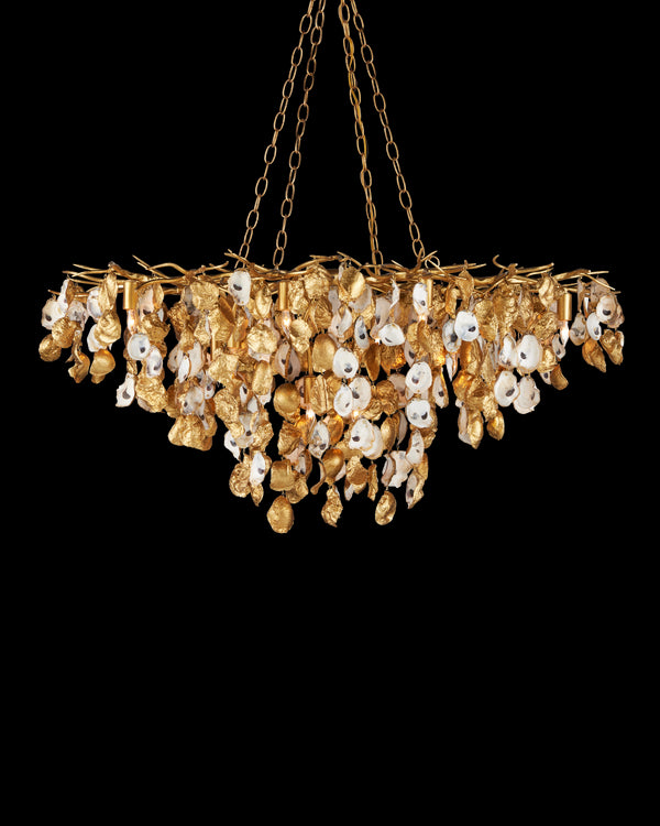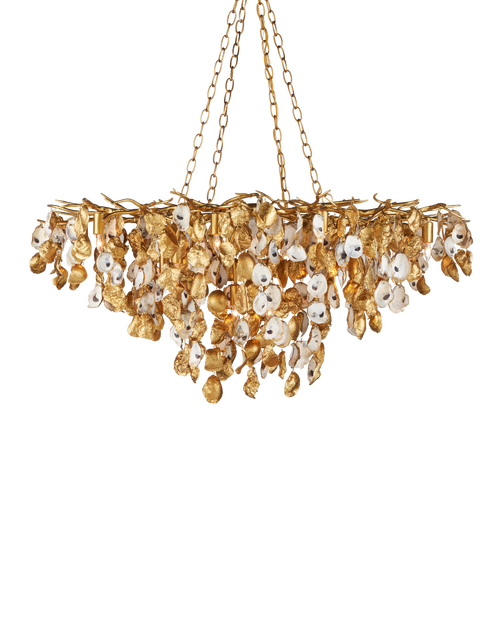 The Stillwater Oval Chandelier dangles strands of hand-selected oyster shells from a wrought iron frame...