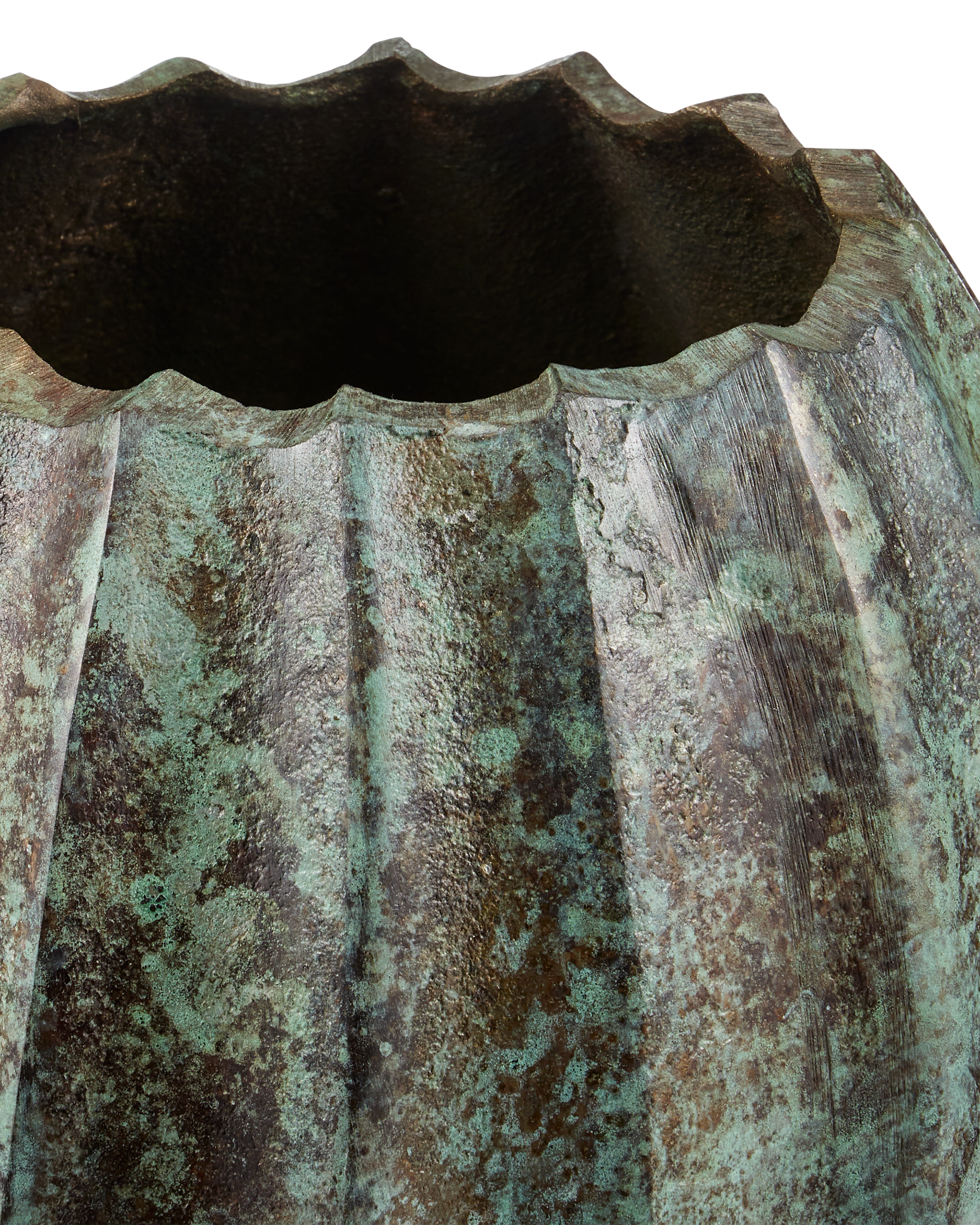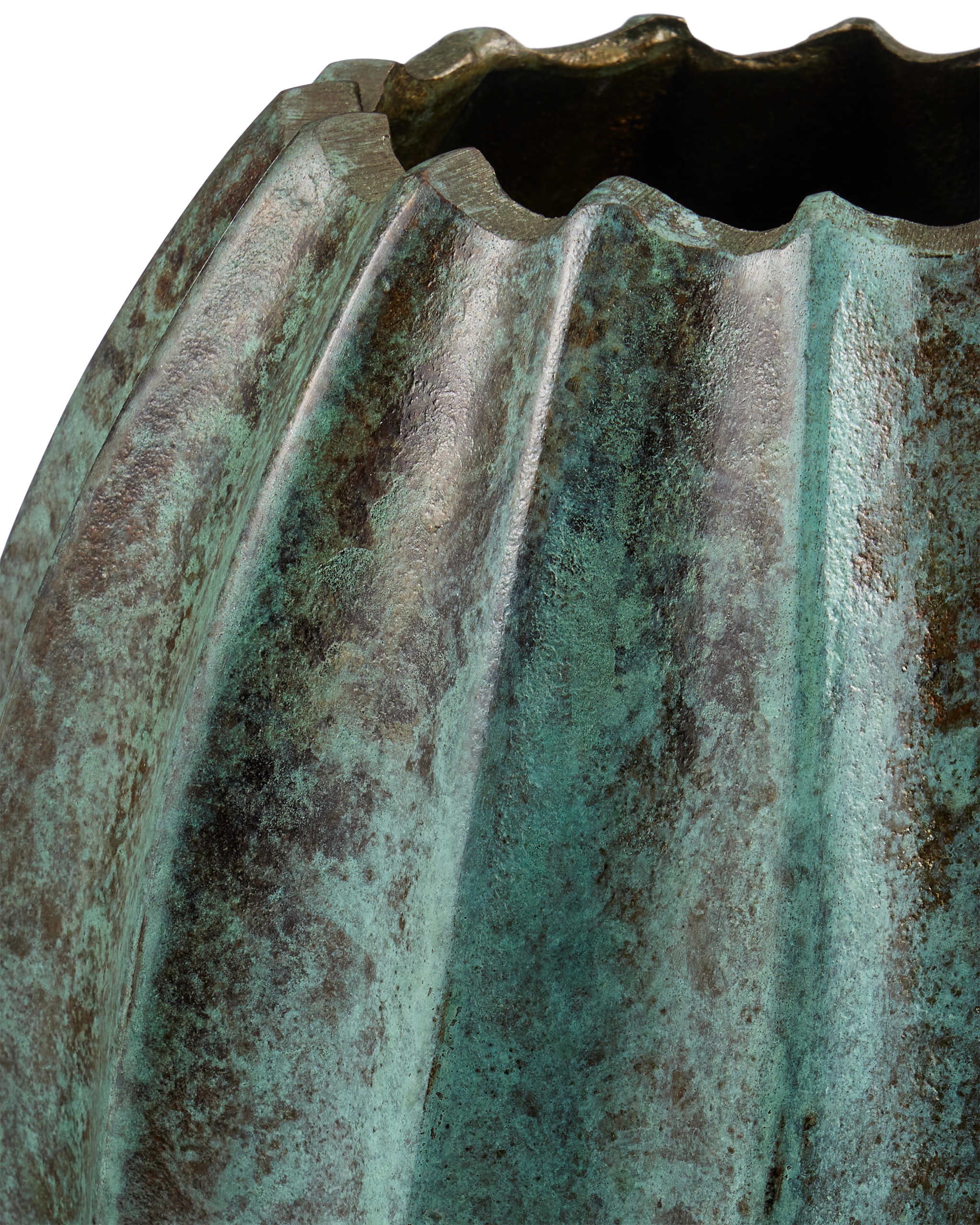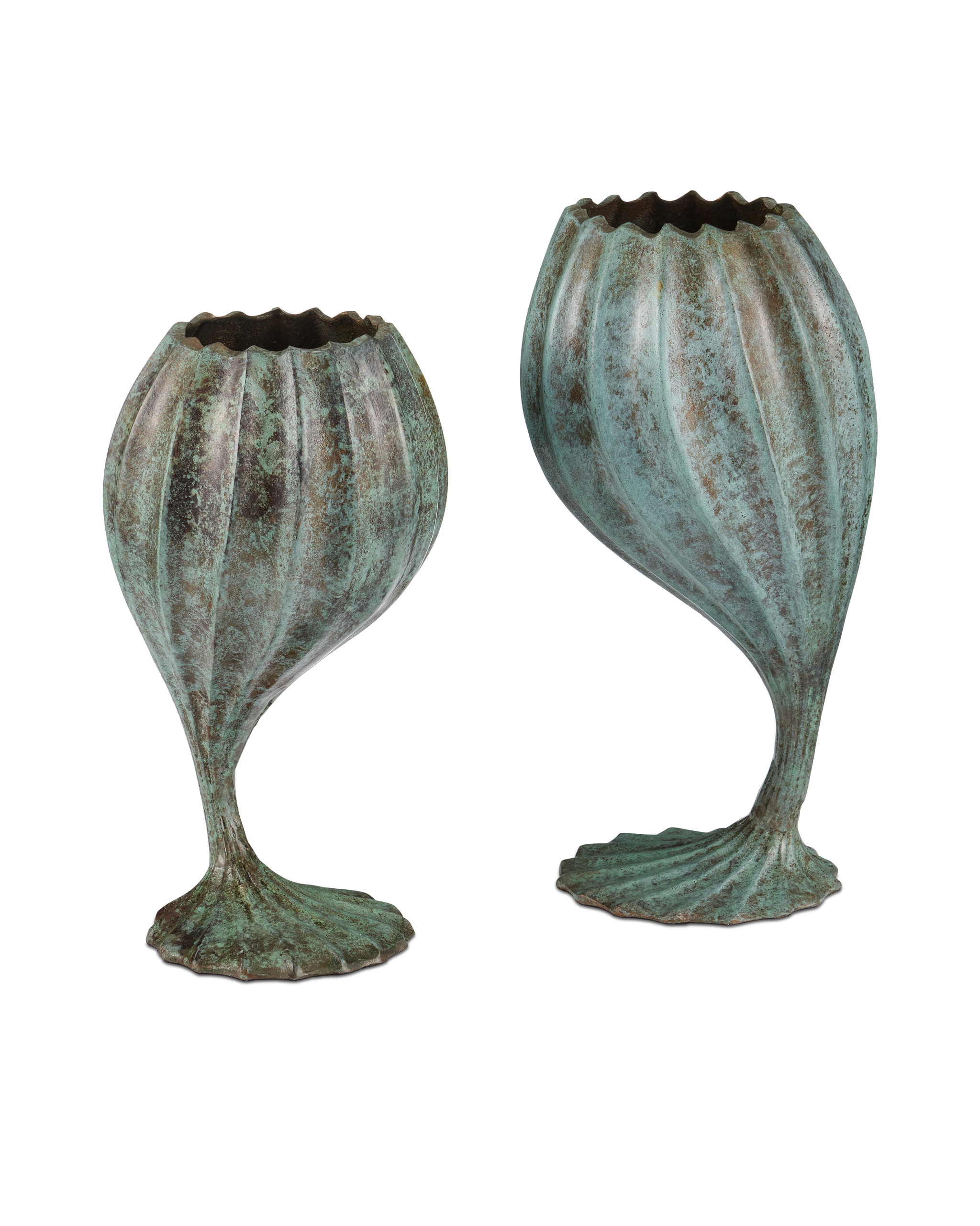 • The Utrecht Object Set includes two vessels with organic profiles made of cast aluminum that have surfaces covered in an incredible raw patina. Once these vases are pulled from the mold, they are oxidized to make them look naturally aged like fine antiques.