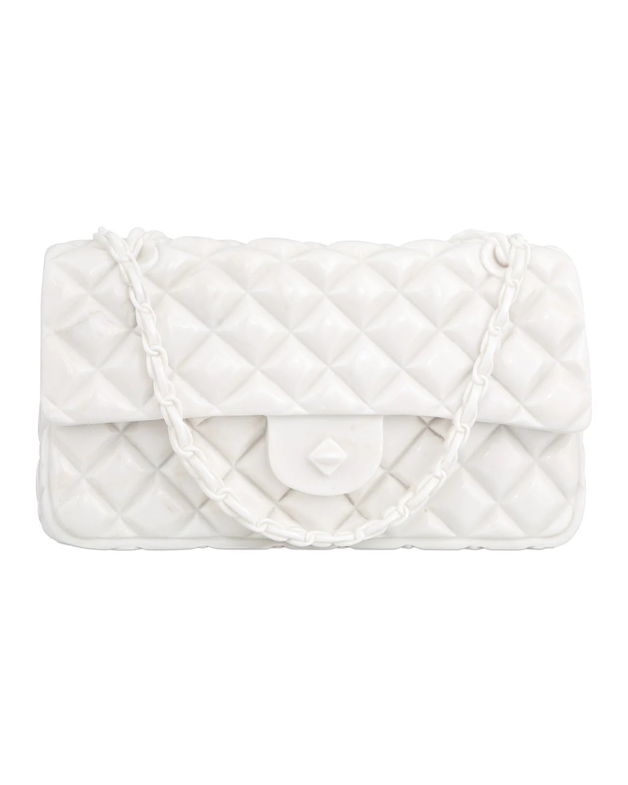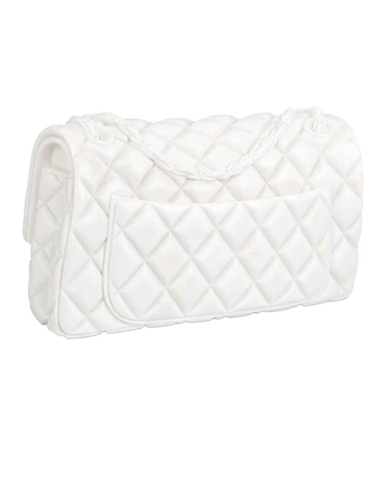 • Carved from solid white marble in the shape of a couture handbag.