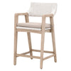 • Experience a delightful fusion of style and functionality with the Lucia Counter Stool by Essentials For Living. This transitional masterpiece features a white rattan and natural gray mahogany frame, meticulously crafted from wicker and solid mahogany wood. The woven wicker back and seat design is beautifully complemented by the light gray upholstery, making it a versatile seating option for your kitchen or bar area. With dimensions of 21.5" wide, 21" deep, 39.75" high, the stool offers a generous seating area. The seat height is ideal for many counters or bar tables, measuring 17.5". The seat is enhanced by a removable upholstered seat cushion made from a 55% linen and 45% polyester fabric blend and foam. The slightly distressed solid mahogany wood frame ensures lasting durability and support. Make a statement in your home with its perfect blend of coastal design and functionality.