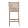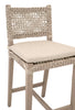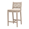 • The Costa Outdoor Counter Stool by Essentials For Living will add a touch of coastal style to your outdoor or indoor living space with its woven design. It measures 18.5" wide, 21.25" deep, 40" high, with a seat height of 28". Constructed with a solid teak frame and legs, this stool is not only sturdy, but durable and built for the outdoors. An oat-colored flat rope is hand-woven to create a unique seat with a nautical design. The legs are built with leg stretchers for extra support and feature a beautiful washed ever finish. The washed ever finish neutralizes the teak wood and makes it resilient to change from weather elements. A removable seat cushion is covered with performance ecru olefin fabric and can be easily cleaned. The stool and cushion should be stored away in extreme conditions. This counter stool will be the perfect addition to any transitional or traditional living or outdoor area.