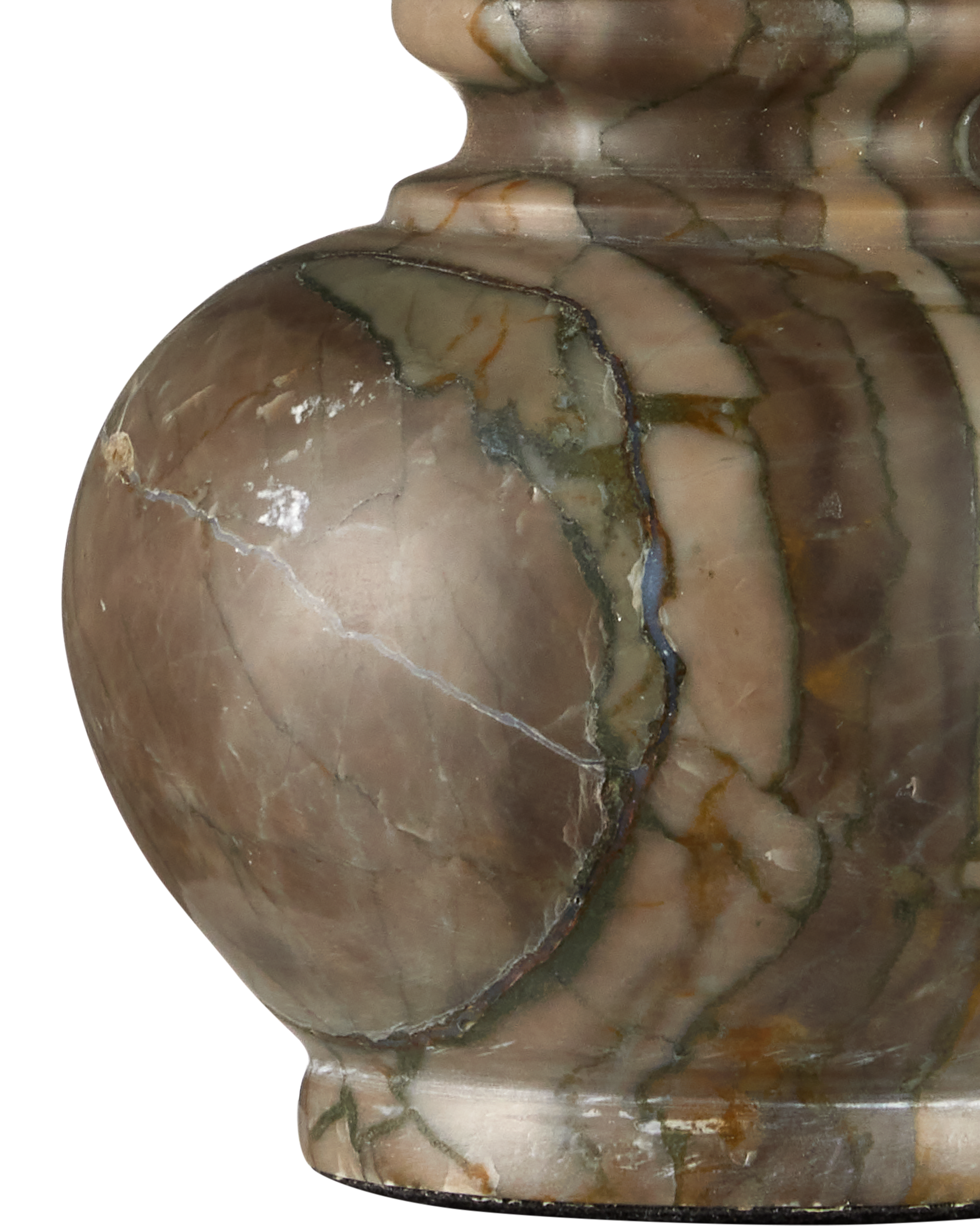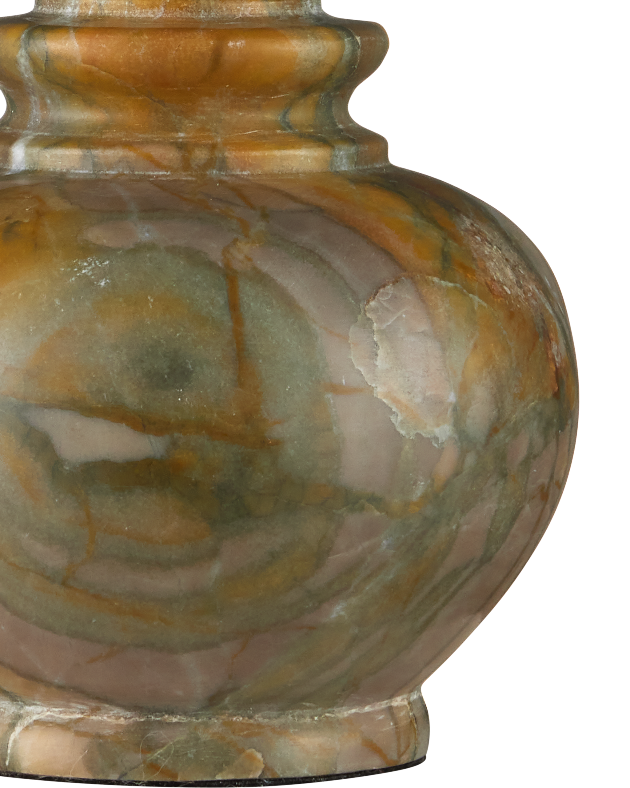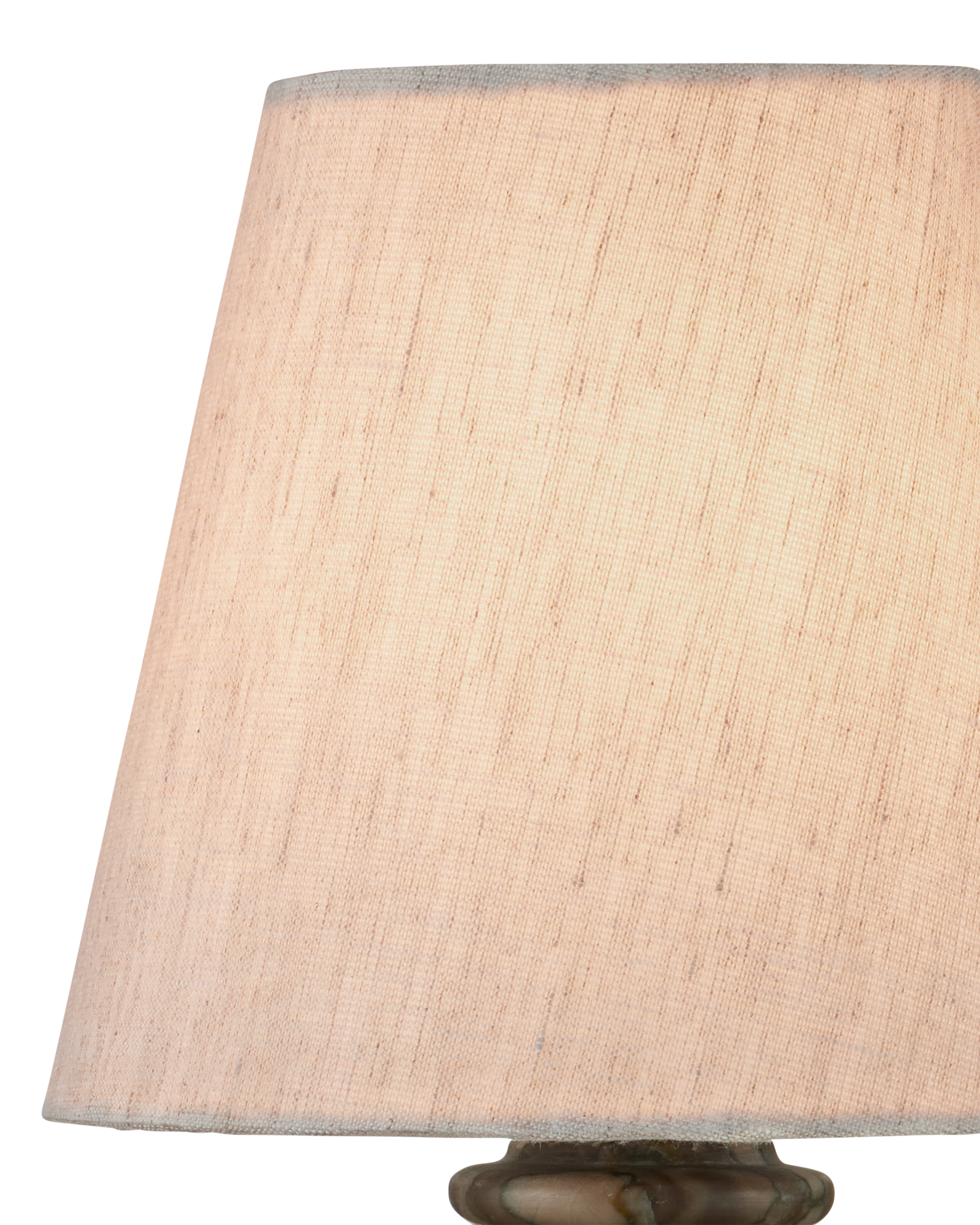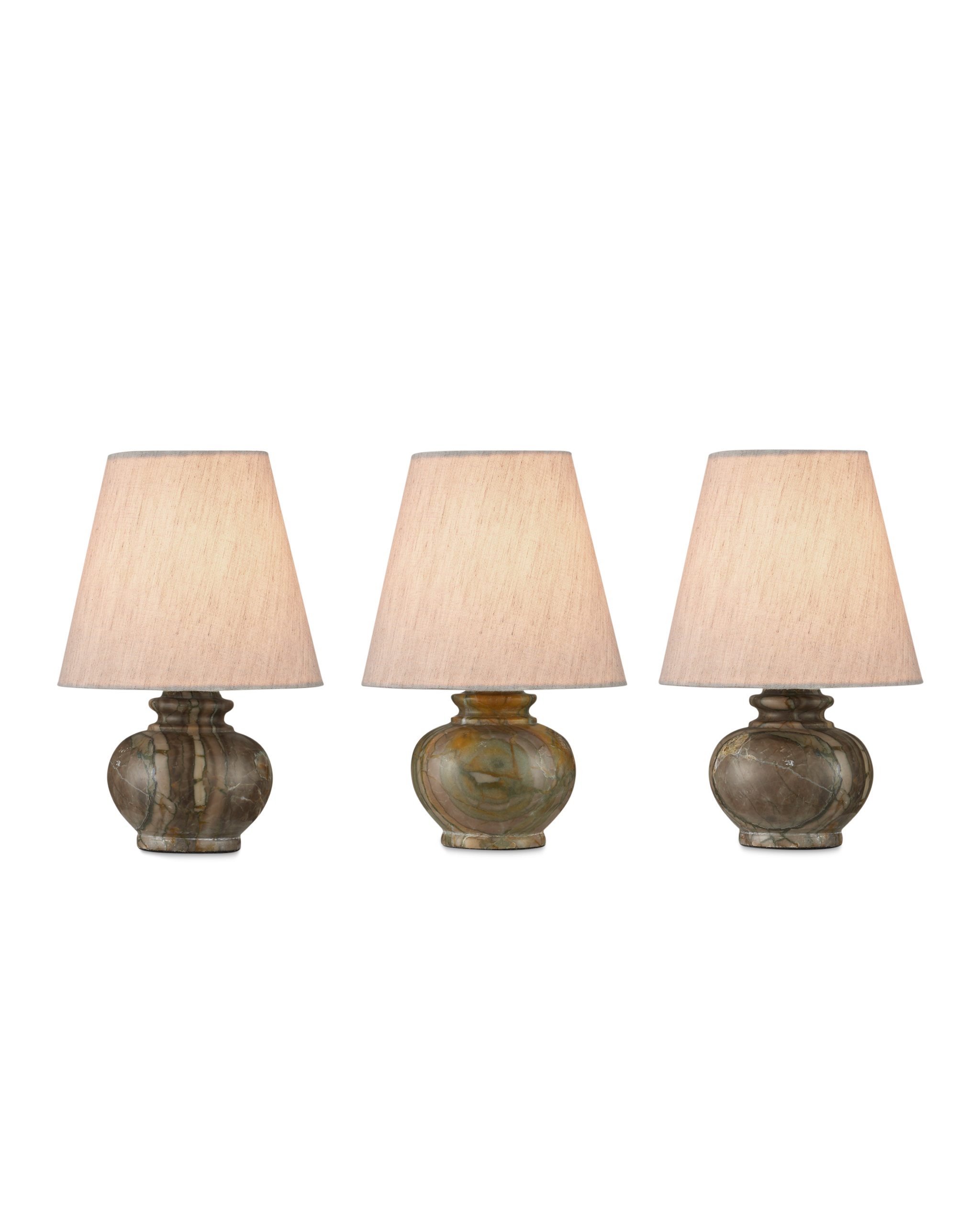 • The Piccolo Pistachio Mini Table Lamp is a very petite lamp made of Pistachio Green marble that was modeled after a vintage design. At only 4.5 inches high to the bottom of the shade, it fits into most tight spots like bookcases, though the beauty of the natural material will make it a standout in more commanding decorative arrangements. Because the marble is a stone, no two lamps will be exactly alike. The Piccolo is fitted with an off-white linen shade.