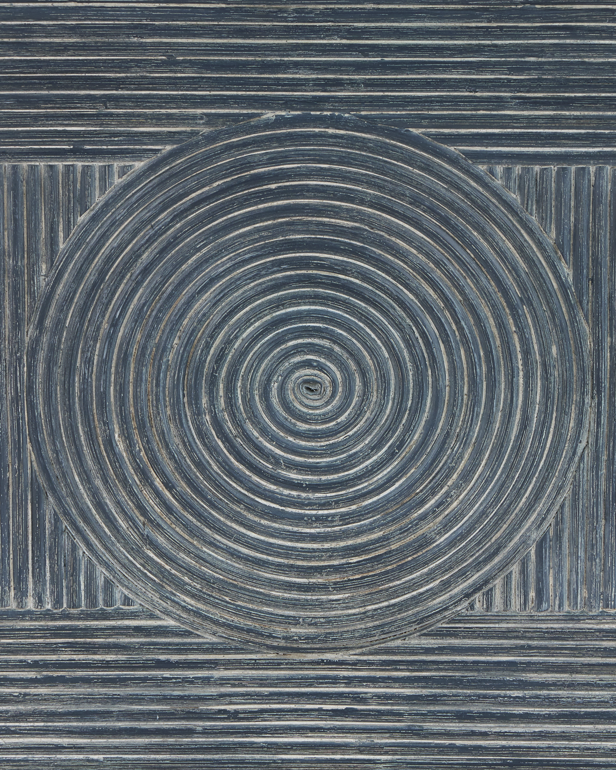 • The Santos Vintage Navy Side Chair has a split rattan pattern on the back, which is made by hand and applied to a solid mahogany frame. Once the natural material is in place, a vintage navy finish covers the back, frame, and legs. The blue dining chair is upholstered in a Barrett Dusk material. The chair has brass ferrules to add sophistication to the overall design.