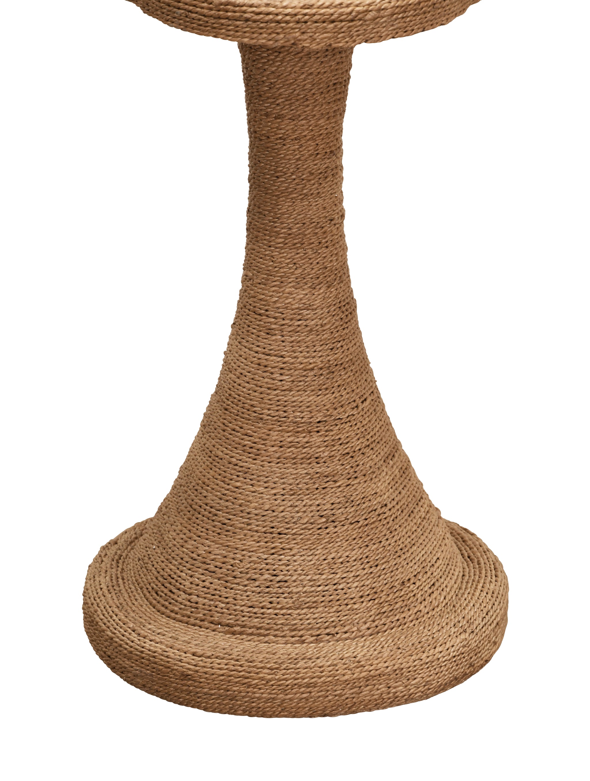 Add organic texture and a charming silhouette to your space with the Primrose Accent Table by Worlds Away. Its distinctive clover-shaped top is entirely wrapped in natural rope, creating a unique and earthy focal point. Perfect as a stylish side table in any living area.