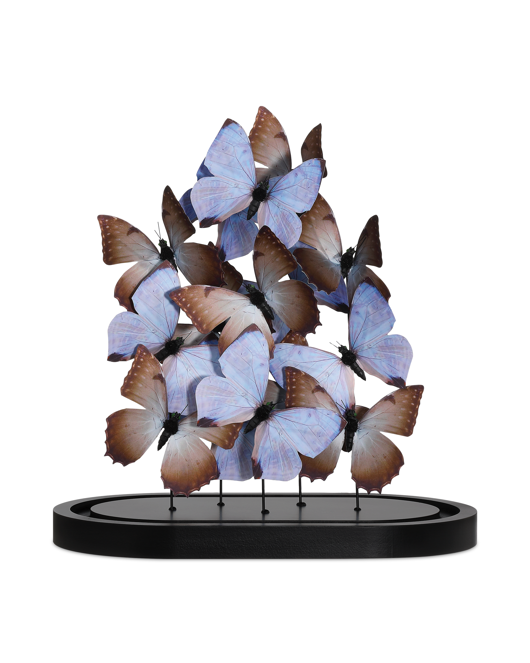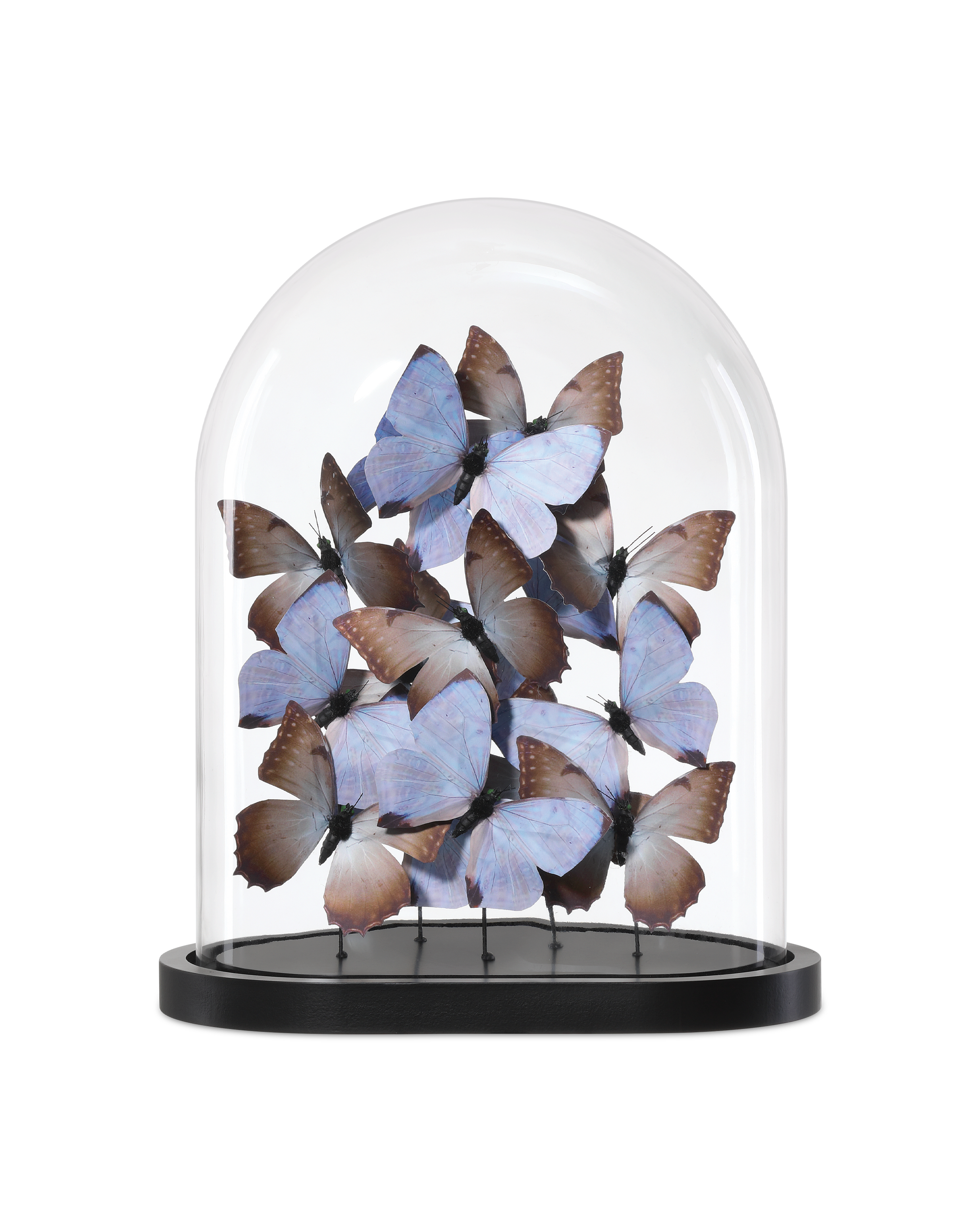 • Delicately lovely, the Rue de Bac Pale Blue & Pink Large Butterflies form a sculpture set within a glass dome that captures a fleeting moment in nature with artistic elegance. Crafted from forging paper, each butterfly is meticulously shaped and arranged to appear as if it's fluttering in mid-air. Soft hues of pale blue and blush pink bring a sense of serenity to the piece, while the varying heights and angles of the butterflies create a dynamic, lifelike display.