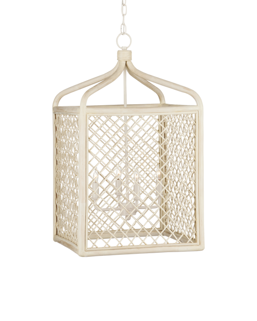Made from steel and hand-finished in an antiqued white crackle, this pagoda-shape three-light pendant adds...