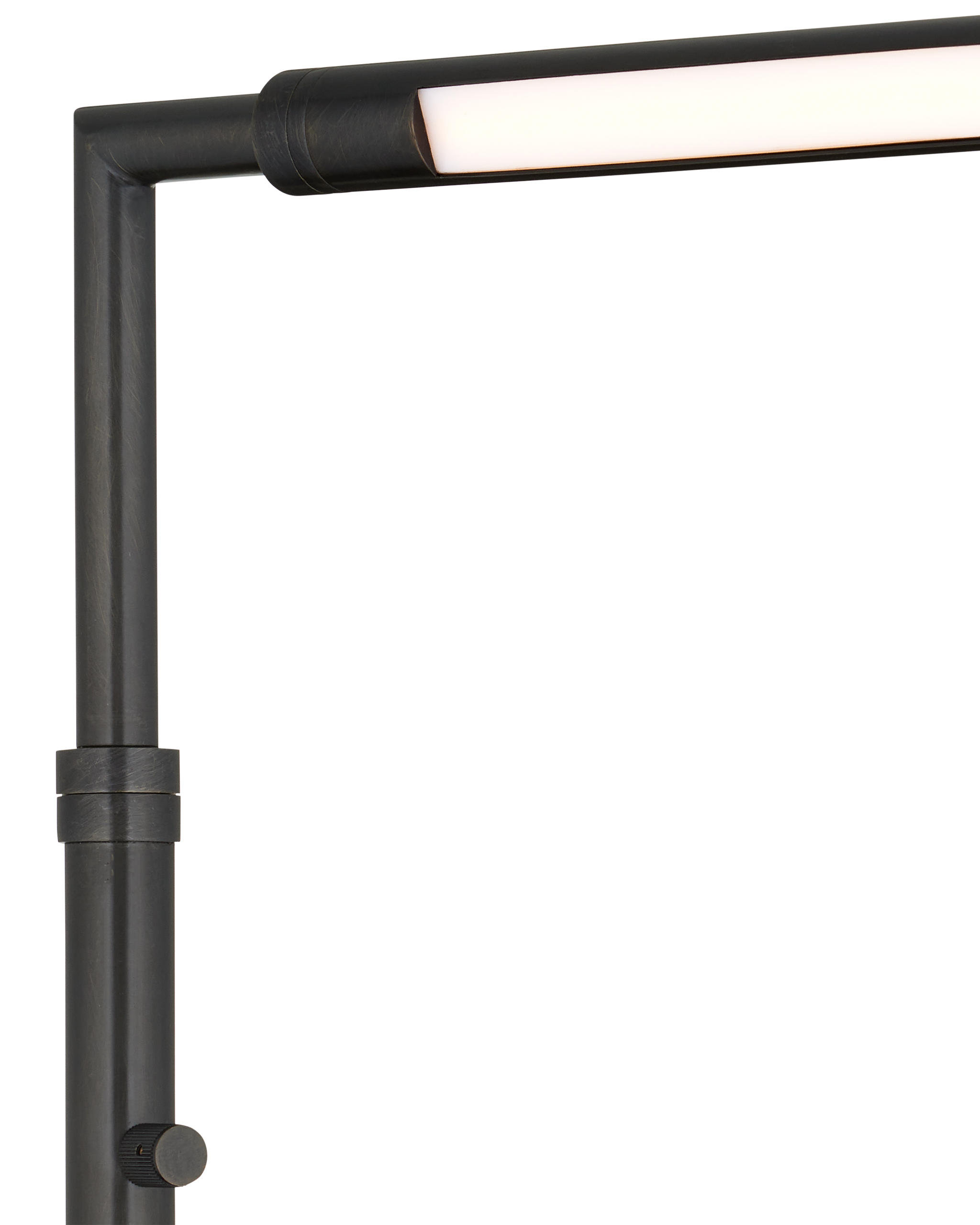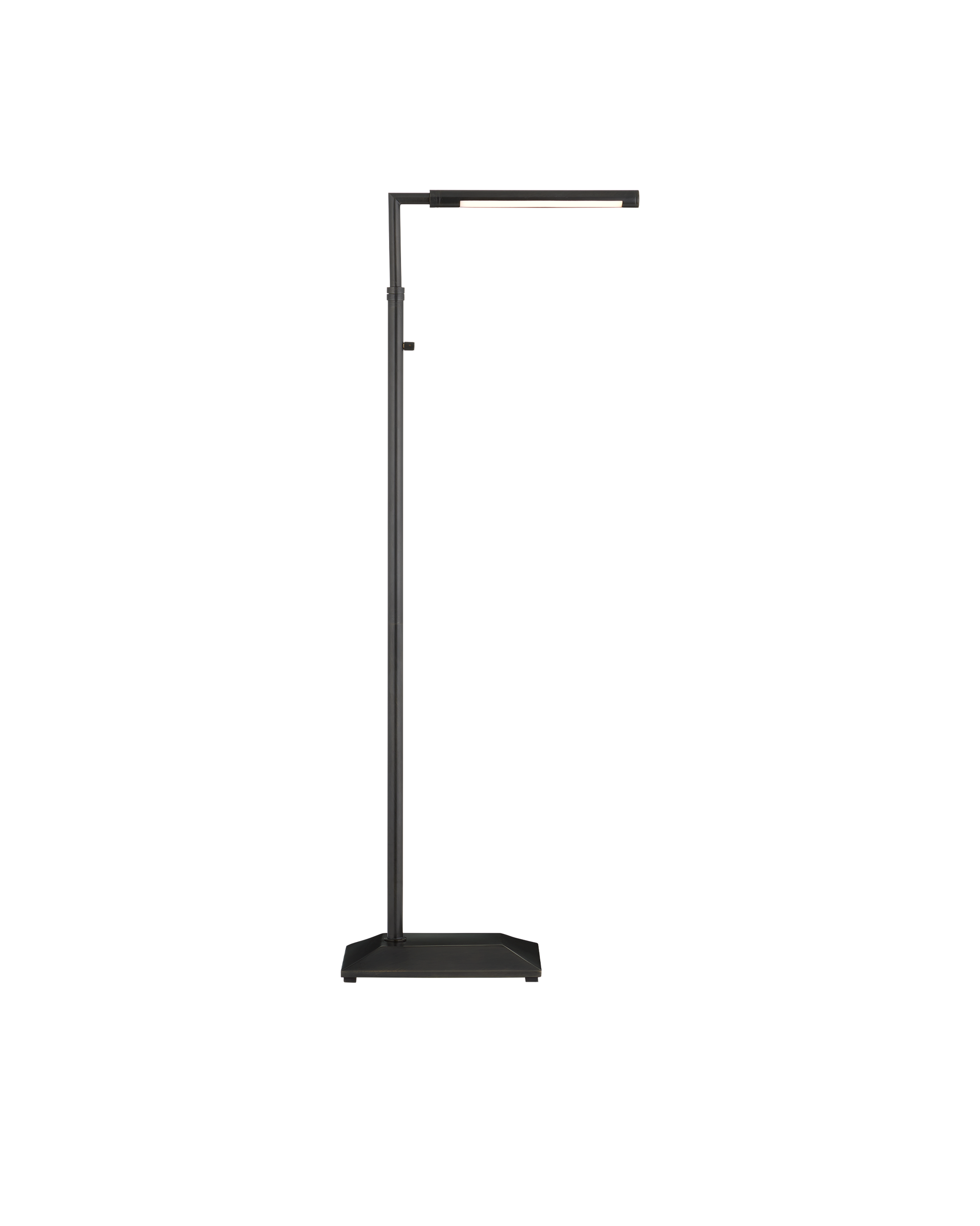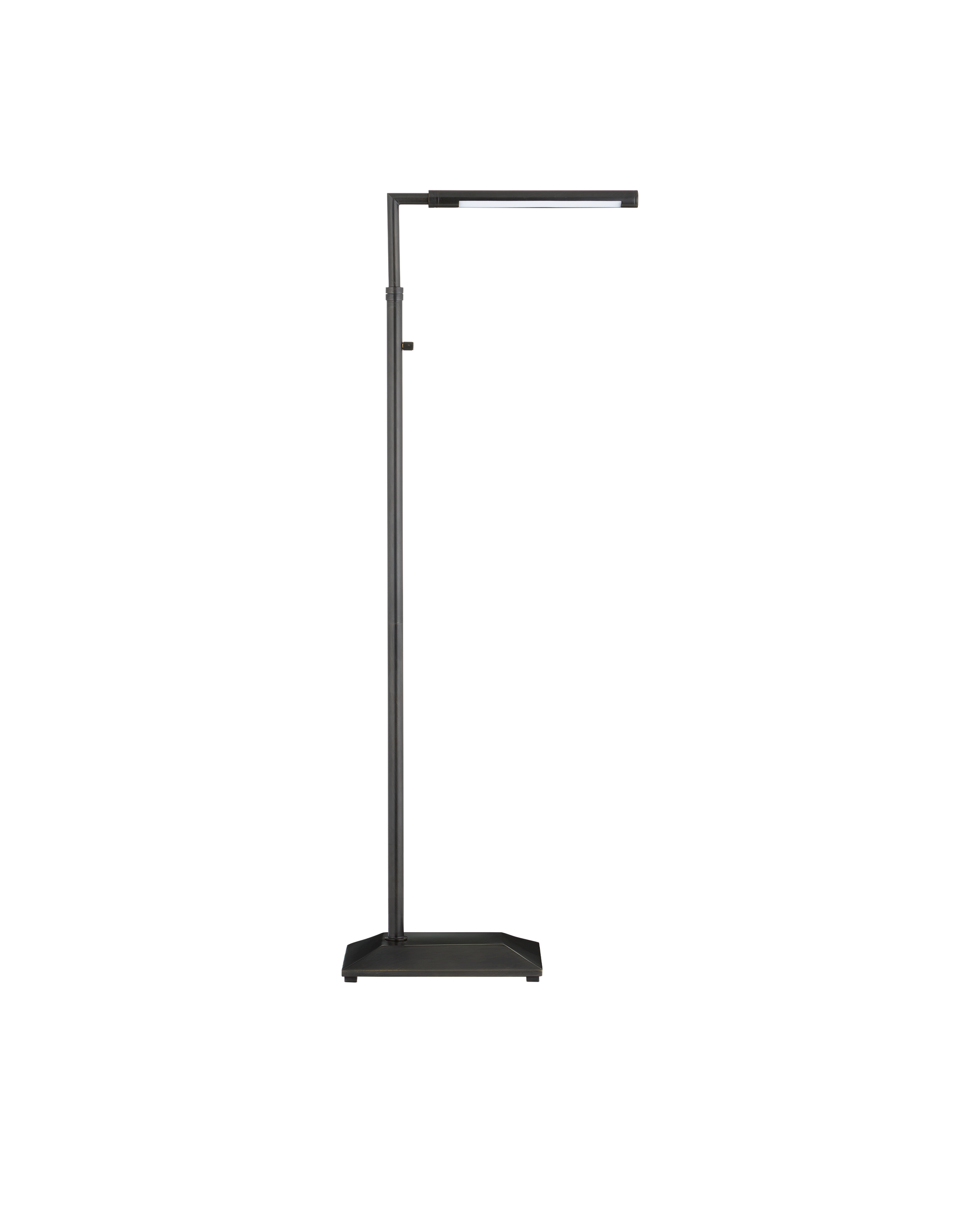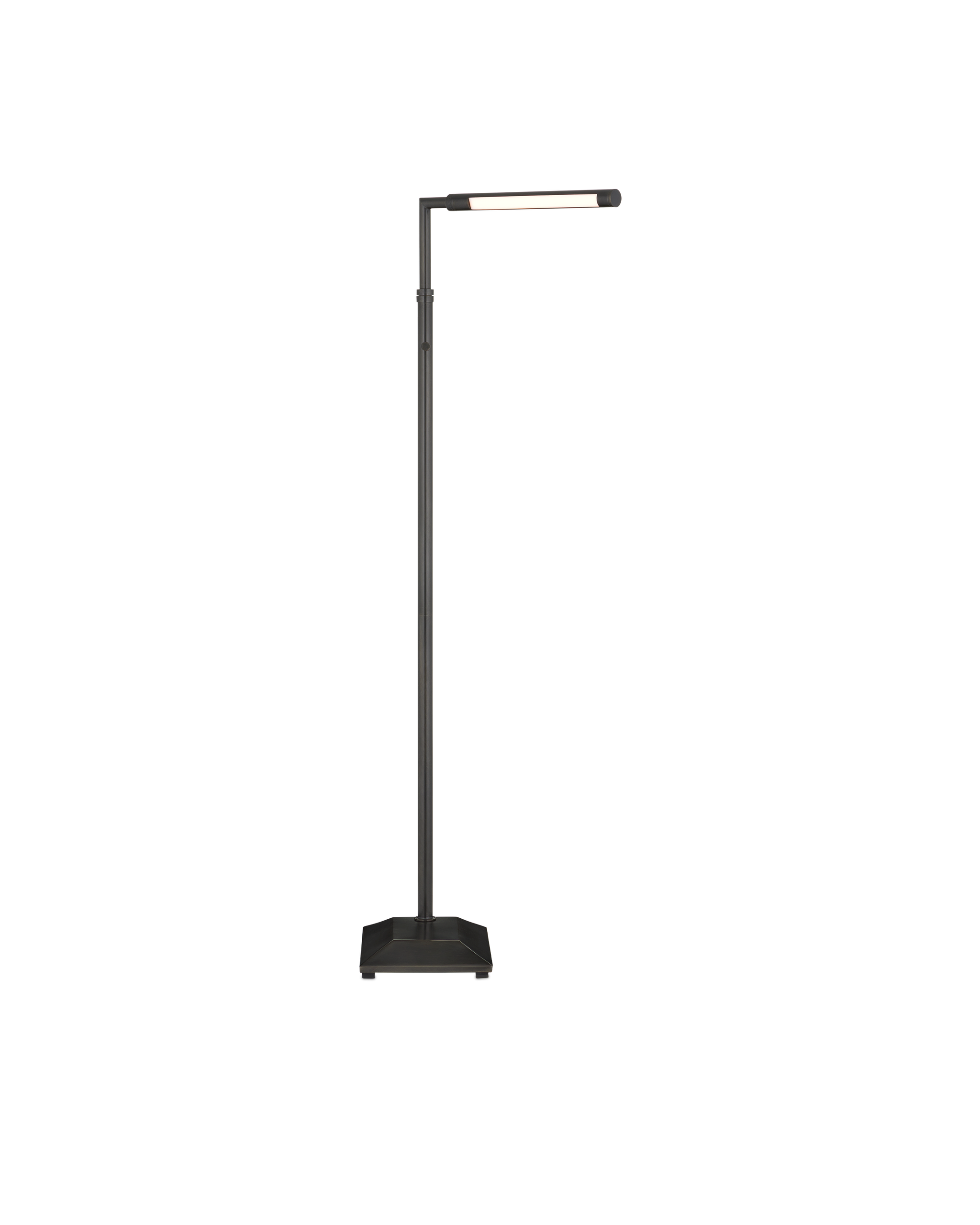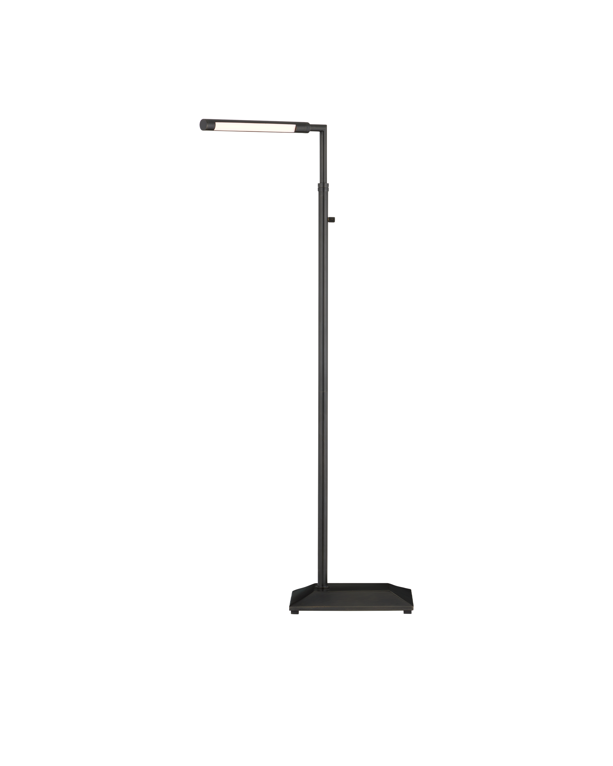 • The Autrand Bronze Floor Lamp is a nimble fixture that focuses illumination wherever it is needed most, as it swivels from side to side, and the tubular shade on the top arm can be maneuvered to cast light up, down, or right to left. Made of metal in an oil-rubbed bronze finish, the simple lines of this floor lamp make it great for any number of interior styles, including contemporary. The fixture has a dimmer switch and is lit with integrated LED technology.