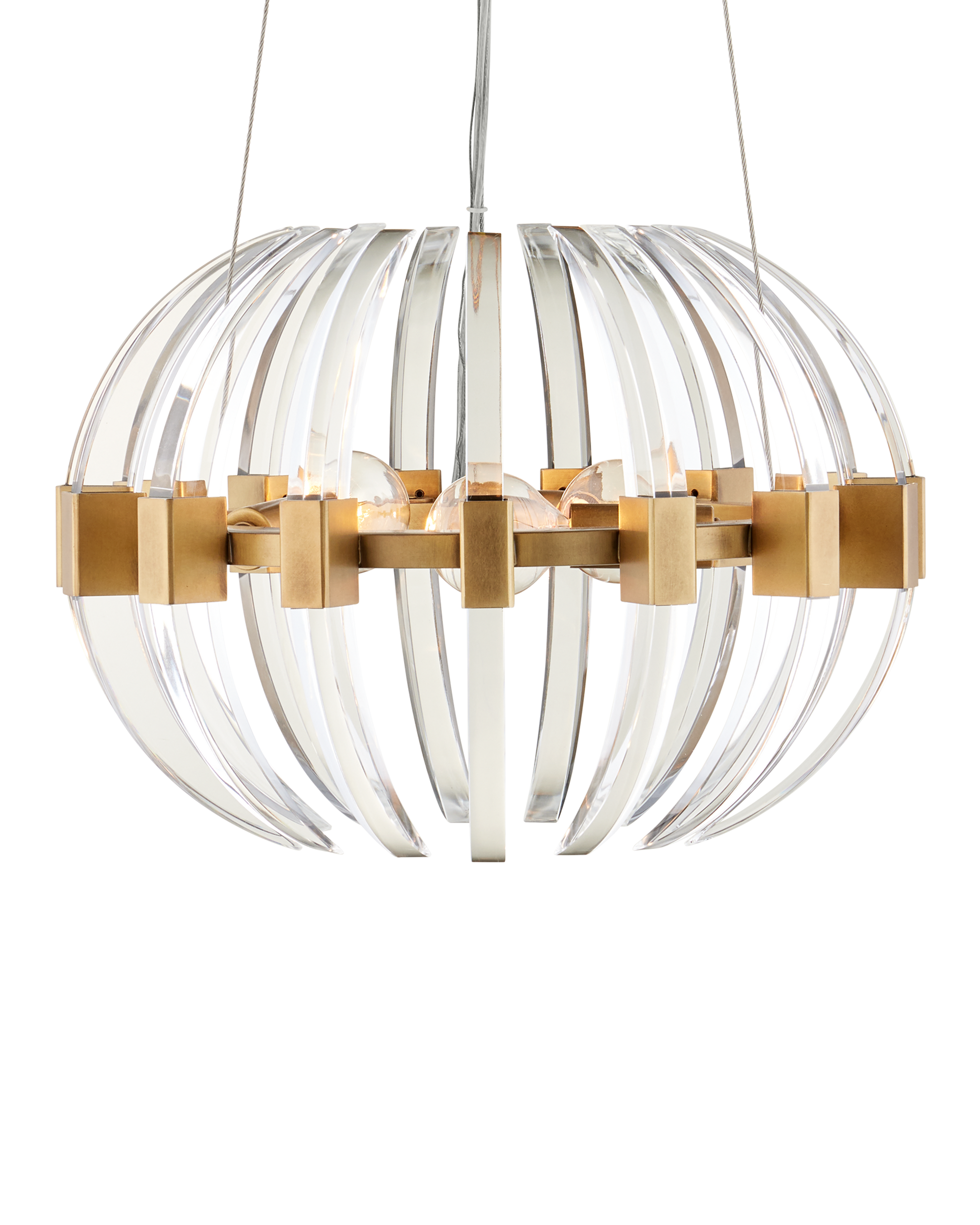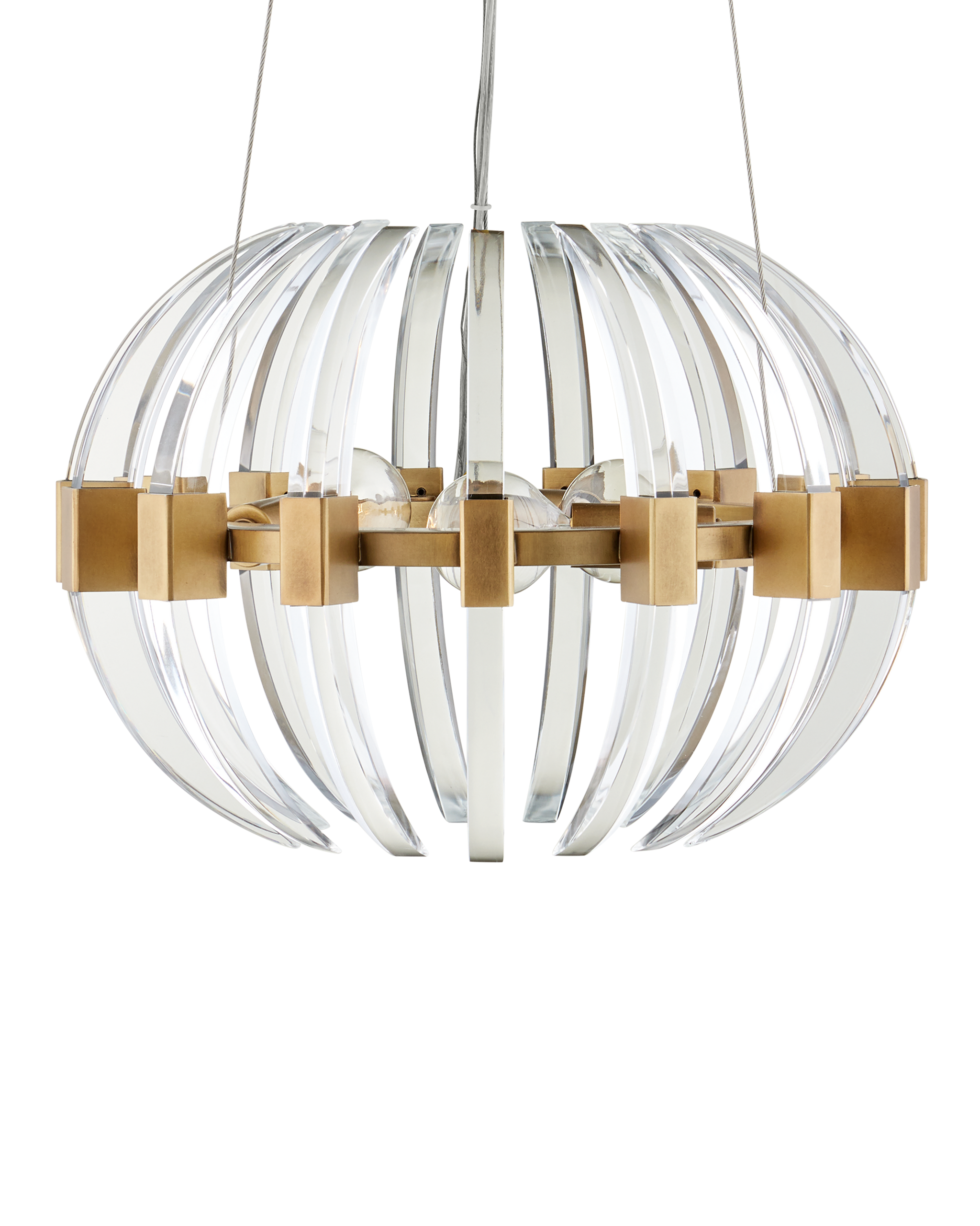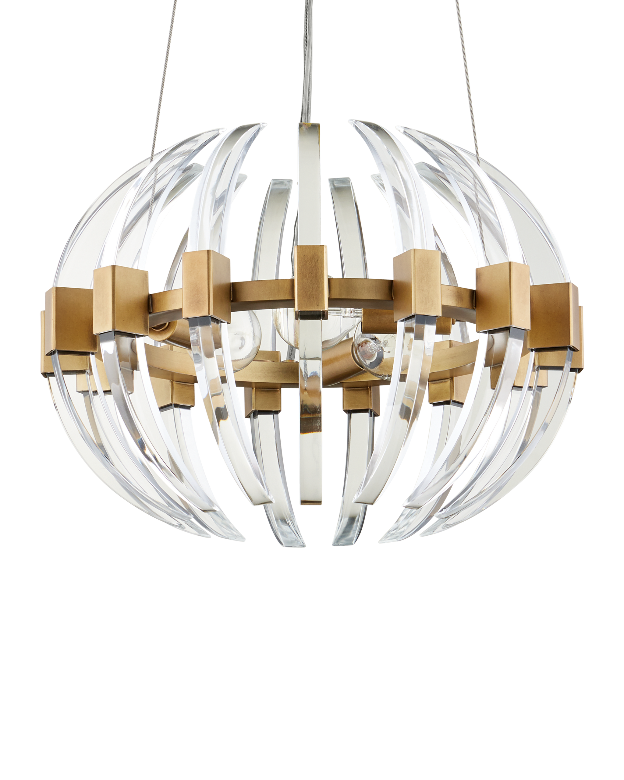 • The Coquette Small Chandelier is a modern iteration of Art Deco artistry made of slices of optic crystal and metal in an antique brass finish. The crystal blades that line the brass chandelier read like half-moon slivers to bring the fixture a warm-cool hint of glamour. Adjustable from 14" to 150" with use of included chain/rod kit/cable. If your space calls for a longer drop, additional chain/rods/cable is available for purchase.