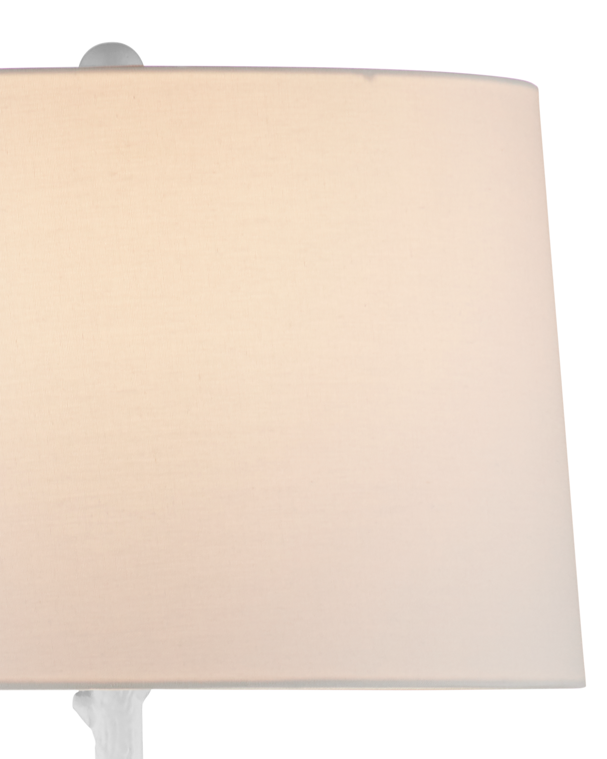 • The Piaf White Floor Lamp is made of cast aluminum in a gesso white finish that makes it a contemporary-leaning element. The whimsical design has three birds perched on twigs extending from a branch-like stem that disappears under the off-white linen shade. Though there is a playful feel to its design, the white finish and the elegant, minimal lines make the creation apropos for even ultra-contemporary rooms.