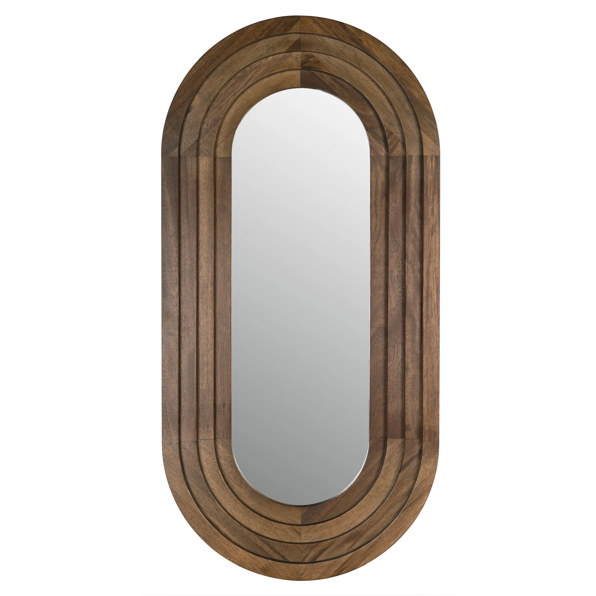 • The New Fuss Mirror is a statement piece, crafted from Walnut and adorned with a luxurious Dark Walnut finish. With dimensions of 32W X 3.5D X 64.5H, it serves as both a functional mirror and a striking piece of art. Key Features Material: Walnut Finish: Dark Walnut Weight: 39 lbs