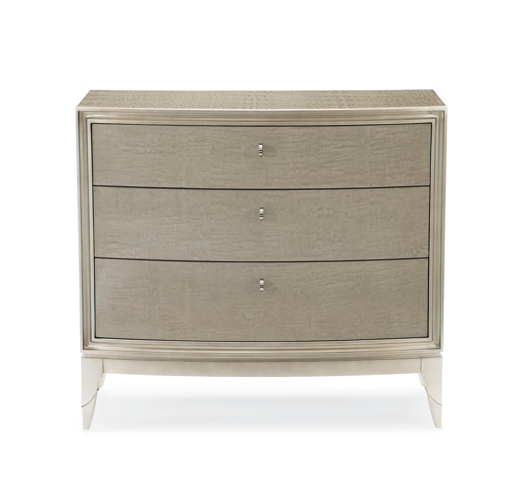 • A classic form with updated style, this three-drawer piece adds distinctive glamour. Its perfect proportions are highlighted with a Moonlit Sand finish over Silver Curly Maple, and outlined in Soft Silver Leaf around its front frame and base. Refreshingly balanced, its tailored design is perfect for modern lifestyles.