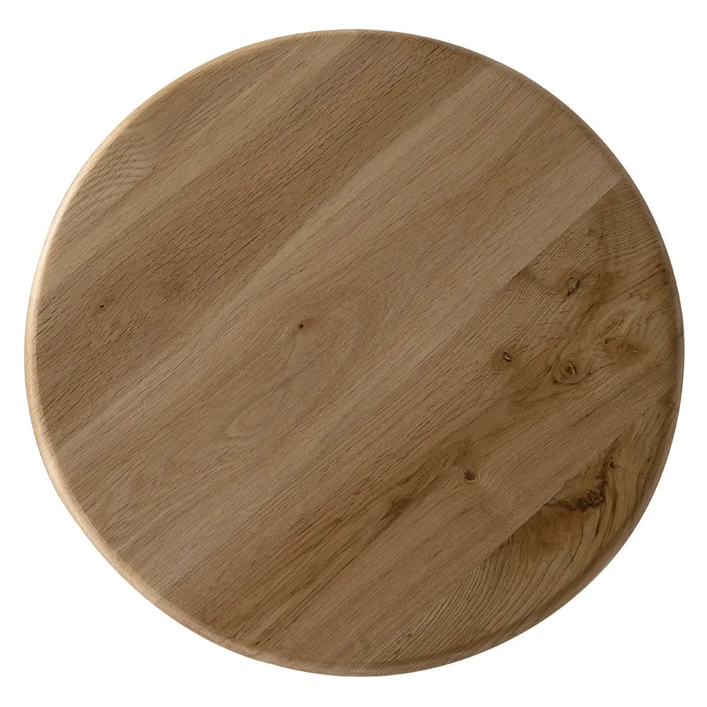• This swivel bar stool showcases a geometric, architectural silhouette with a round white oak seat. A circular footrest adds functional contrast, emphasizing industrial minimalism through sculptural tension and balance.