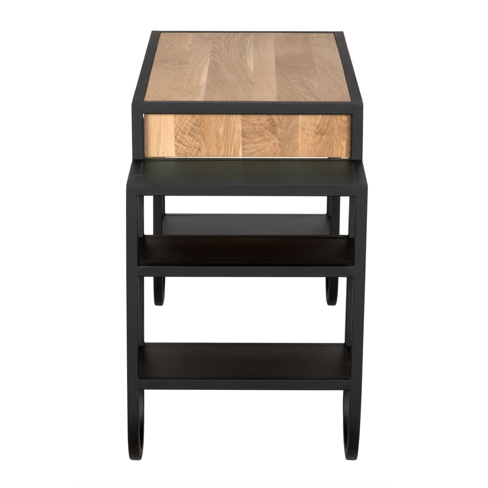 • The Thomson Desk boasts a contemporary design that seamlessly blends industrial steel with natural oak. The matte black finish on the steel legs contrasts beautifully with the natural oak top, creating a modern and visually appealing look. * Metal items are intended to have a rustic appearance that may include welding marks, spotting and variances in tone and luster. Weld and construction marks are part of the handmade nature of our products and are not considered defects or as claim-worthy.