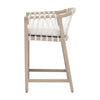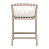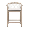 • The Pacific Outdoor Counter Stool by Essentials For Living merges coastal design with durable materials for outdoor use. Its solid teak wood frame has an Ever Teak finish that neutralizes the natural tones of the teak and is resistant to change from the elements. The white speckle hand-woven polyolefin rope adds structure and a nautical flare to the seat. The removable and reversible seat cushion is upholstered in performance white speckle olefin fabric with plush foam that should be stored away in heavy rain or extreme weather. At 24" wide, 22.5" deep, and 35" high with a 27.5"seat height, it features an L-shaped metal footrest cover for added support, making it a durable, inviting perch for al fresco gatherings under open skies.