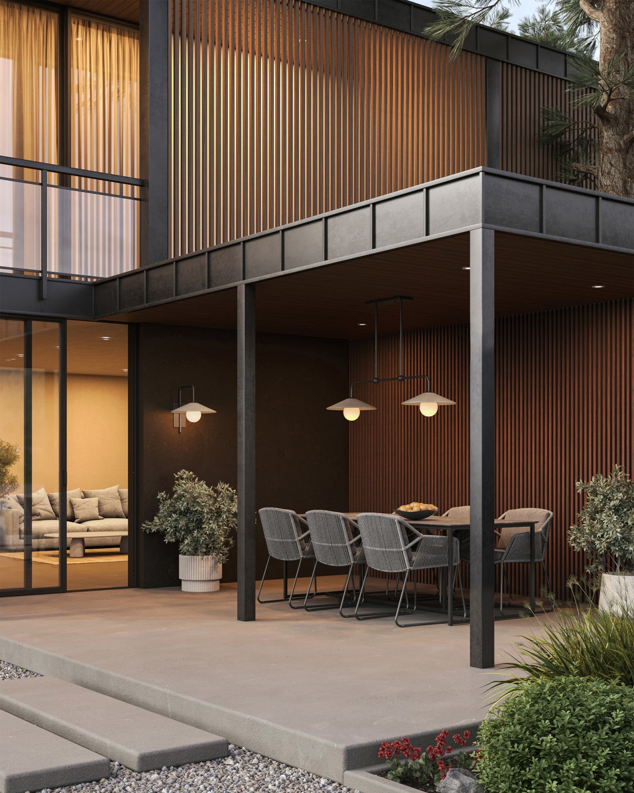 • Fitted with black powder-coated metal hardware and wet-location rated for outdoor durability.