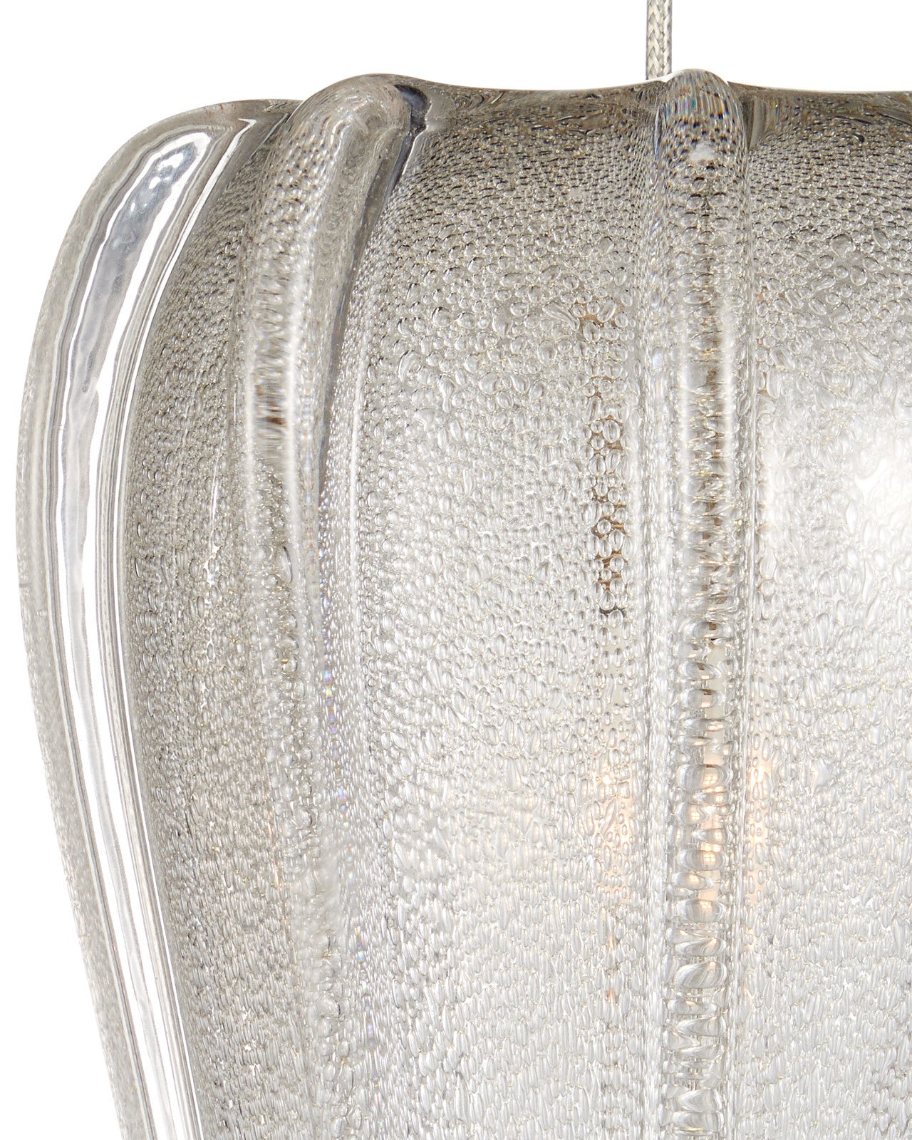 • The Currey & Company Calmar Pendant is a clear glass pendant that is infused with texture when the glass is infused with a tight-bubble pattern. Adjustable from 21" to 133" with use of included chain/rod kit/cable. If your space calls for a longer drop, additional chain/rods/cable is available for purchase.