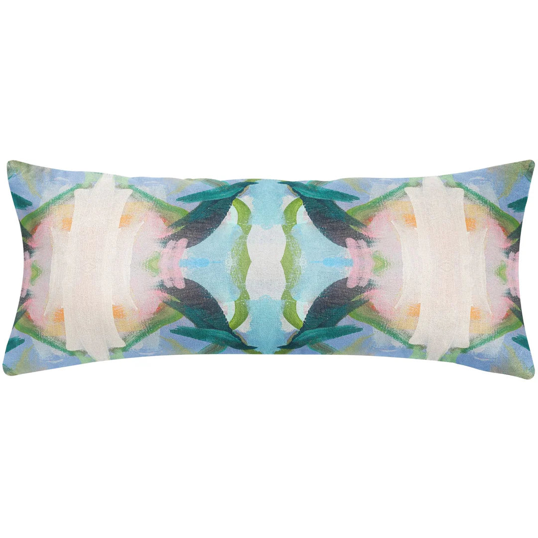 An artful accent with a breezy, layered feel. Soft washes of blue, green, and pink create a balanced, painterly pattern that feels relaxed yet refined. An easy way to add color and visual interest to sofas, beds, or accent chairs.