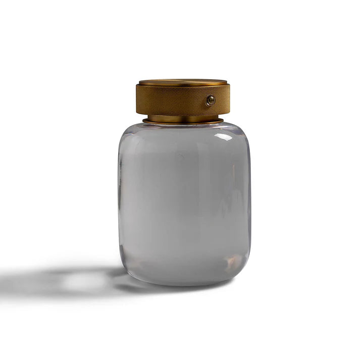 Dramatic. Moody. Unexpectedly --- no plug in wires!  The LED charged Oceanic lamps offer flexibility on placement for the dining table, outdoor event or hall console where there is no need for a hard wired plugin.  The accent lamps are made from hand poured marbleized solid resin vessels where the colors are mixed for a dramatic effect, or come in solid clear. The lamp is then paired with an aged brass finished hardware/cap made of steel.  You can place the lamp up or down depending on the light effect you want.  The oceanic LED charged lamps have a 8-12 hour charge all depending on the light level and useage.  The lamp comes with a usb cable which plugs into a charging block (not included)  or into your computer device for charging the battery. The lamps have a "tap" switch button located on the aged brass metal cap to turn the light on/off.  Lamp will include instructions on how to "charge" and operate light levels.