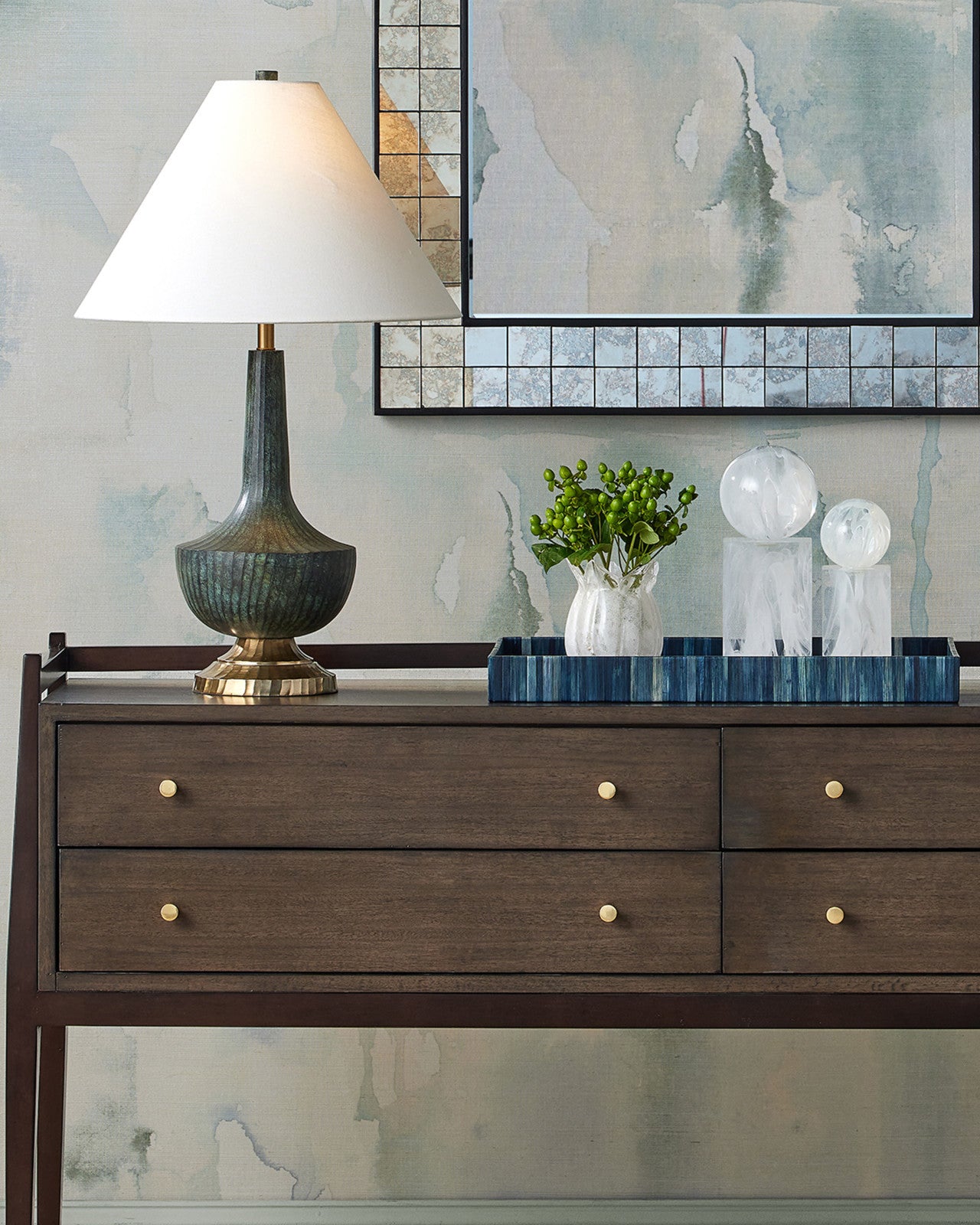 Designed by Dana Gibson, this cast aluminum tray with a durable painted finish, comes in...