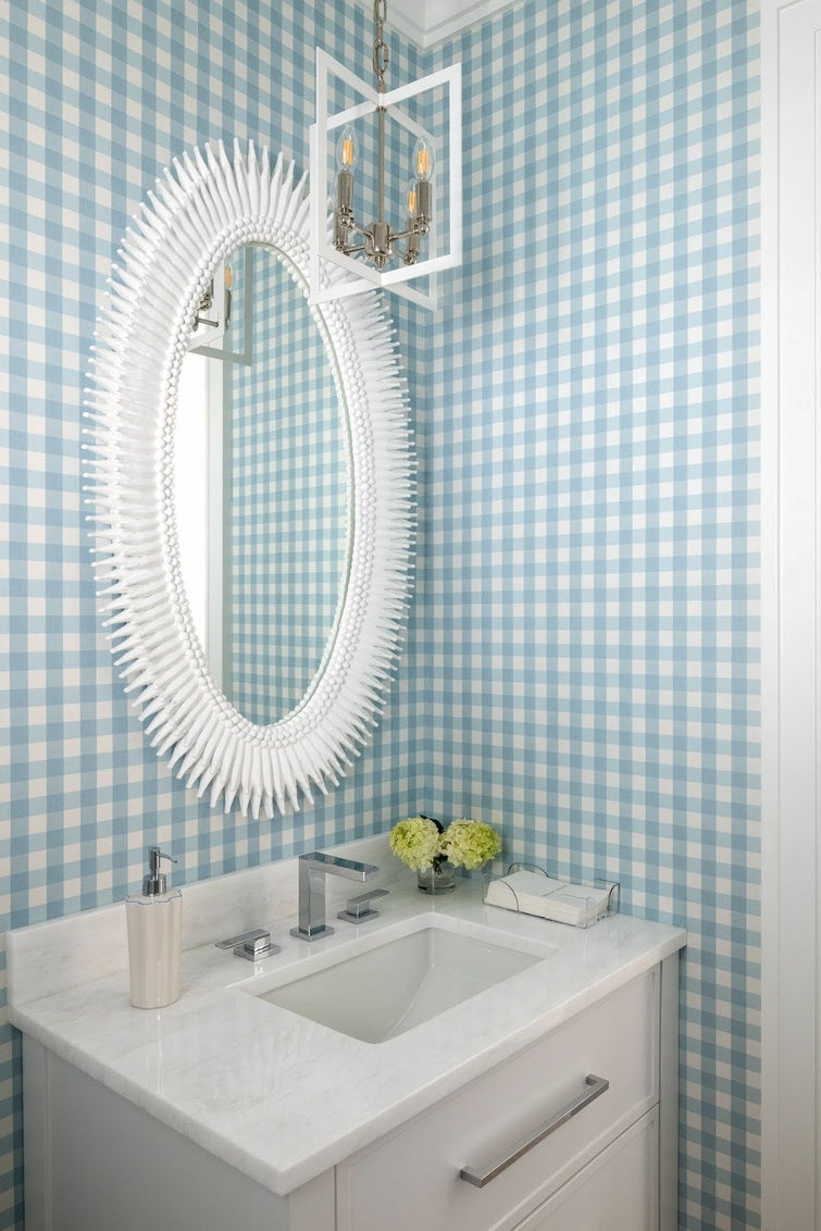 • The Bayberry Hanging by Megan Gorelick Interiors is ideal for over bathroom vanities. The crisp white finish and polished nickel accents provide a super clean aesthetic.