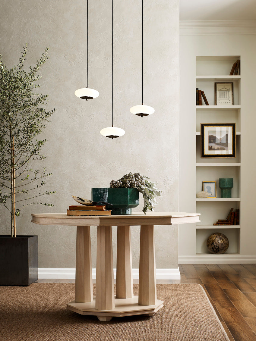 • Constructed of rift-cut White Oak, natural materials and modern geometry are the basis for the Coley Center Table. The raised base and tabletop both reflect the octagonal form. Coley can be an entry, accent, or breakfast table.