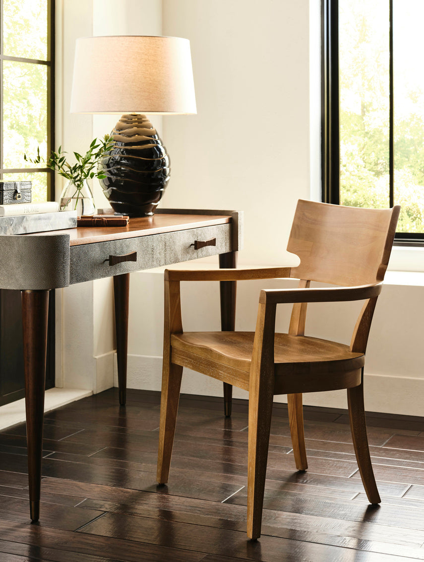 • The Frances Writing Desk brings the elegance of the Jazz Age into your modern space, merging vintage charm with contemporary craftsmanship. Its striking design features a luxurious combination of creamy gray shagreen surrounding the frame, paired with a rich walnut top, creating a sophisticated contrast in both texture and tone. The desk is adorned with bow tie-inspired antique brass drawer pulls, adding a subtle nod to the era's refined style. Slender tapered legs, capped with brass accents, further enhance the desk's sleek, retro silhouette. Perfect for any workspace or study, this desk offers both functionality and timeless elegance, making it an exquisite centerpiece in any room.