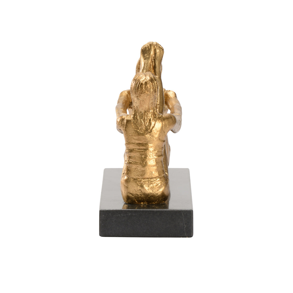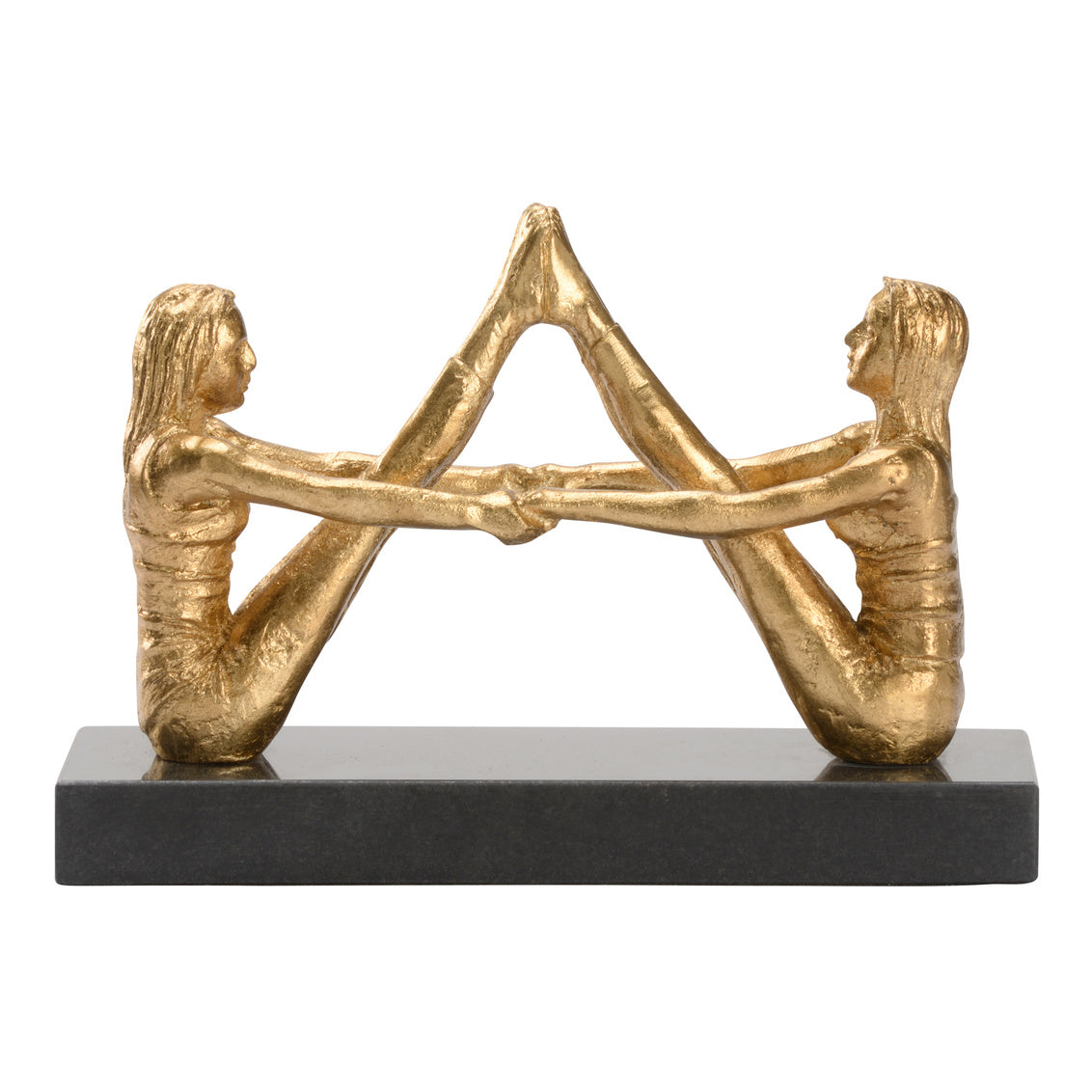 • Designed for the yoga enthusiasts, this handcrafted sculpture features two women in navasana or boat pose. This metallic gold, cast iron accent will complement the existing decor in your home or yoga studio.
