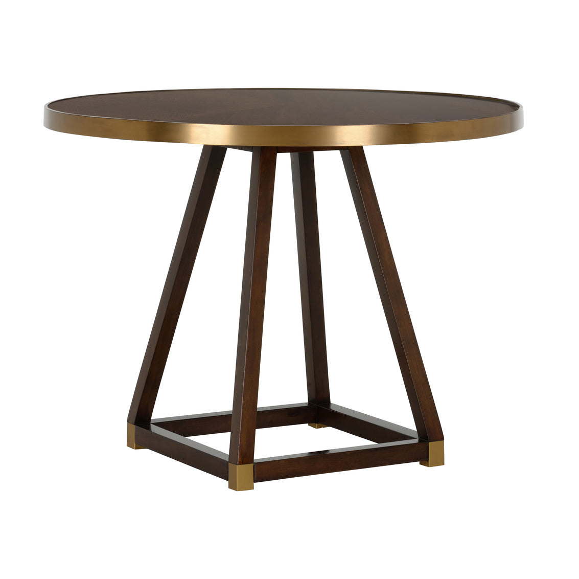 • Crafted of wood with antique brass detailing, Renzo Center Table makes a stunning statement in a foyer or breakfast room. The warm undertones and sleek modern design complement a variety of design styles.