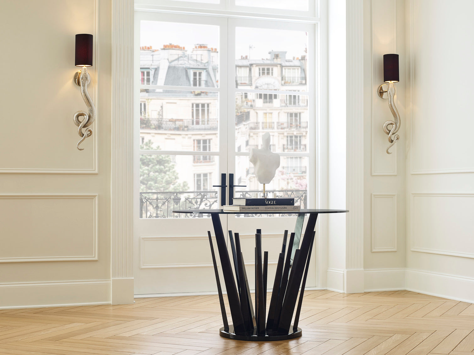 • Guaranteed To Be An Eye Catching Accent, Sapera Sconce Also Provides Ambient Lighting. Crafted Of Iron With A Sleek Brass Finish And Topped With A Black Drum Shade, This One Light Wall Sconce Features A 28" Scaly Serpent With A Coiled Tail Ready To Slither Up The Walls Of Your Home Or Office. Flank A Mirror Or Piece Of Artwork For A Focal Point In Your Design.