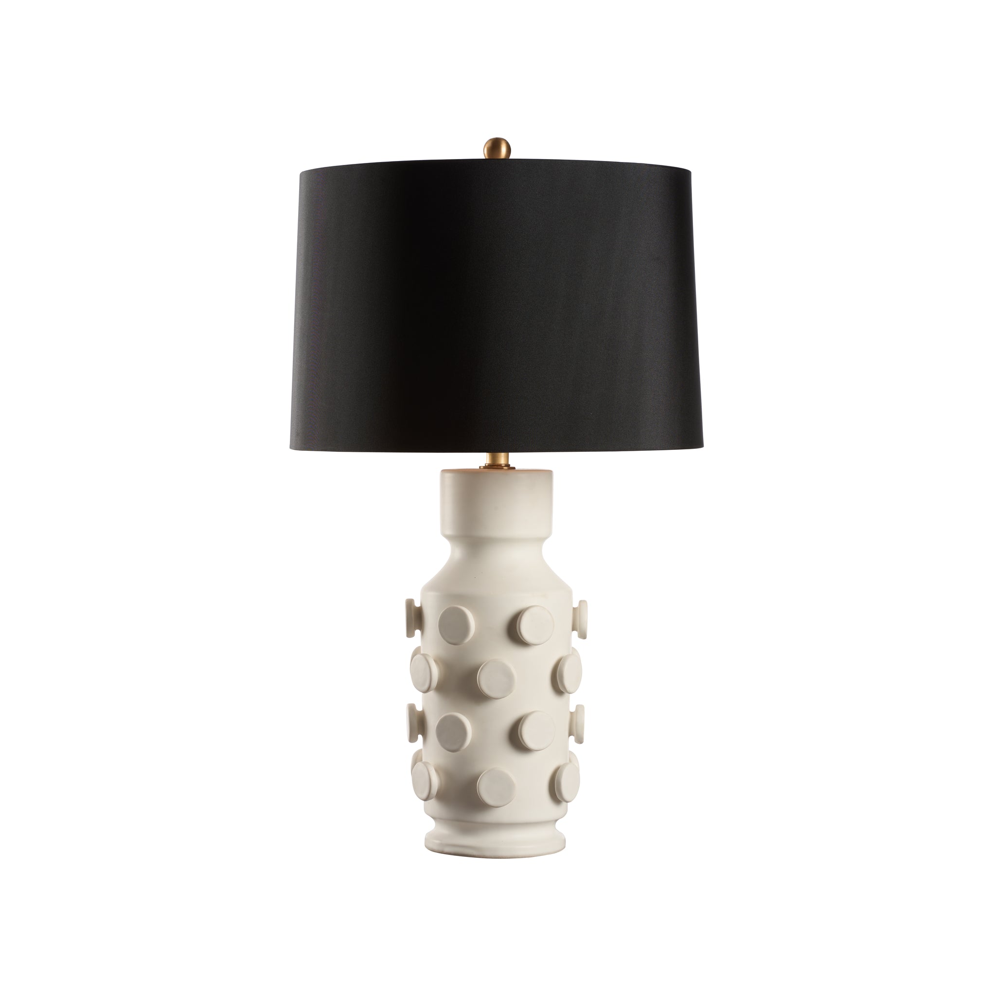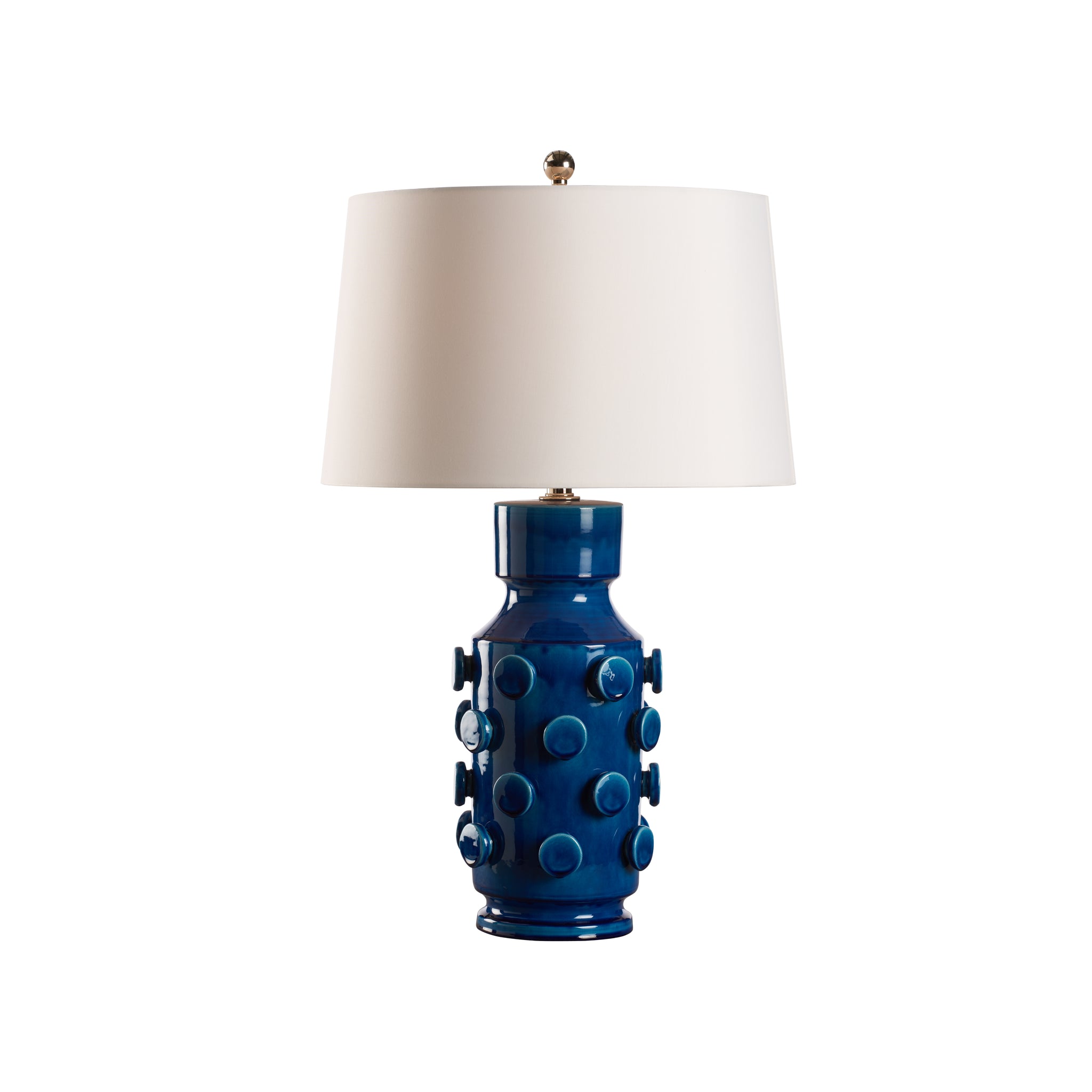 The Ungaro Lamp by Wildwood brings bold texture and modern charm to any interior. Made in Italy from ceramic, its rich blue, green, sky blue or white glaze and raised circular detailing create a striking silhouette with playful sophistication.
