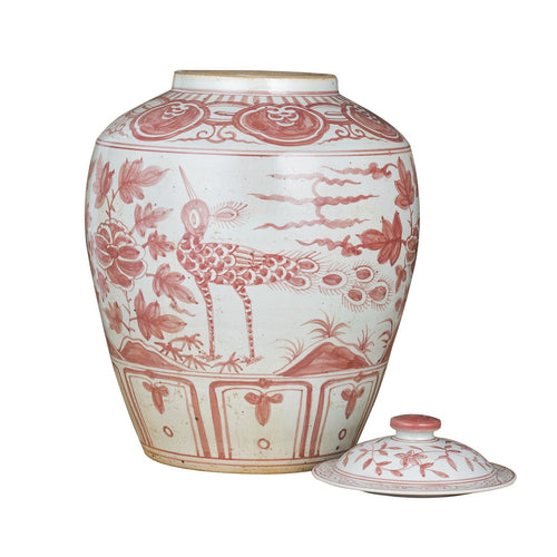 Coral Red Ginger Jar Bird Motif Small By Legends Of Asia