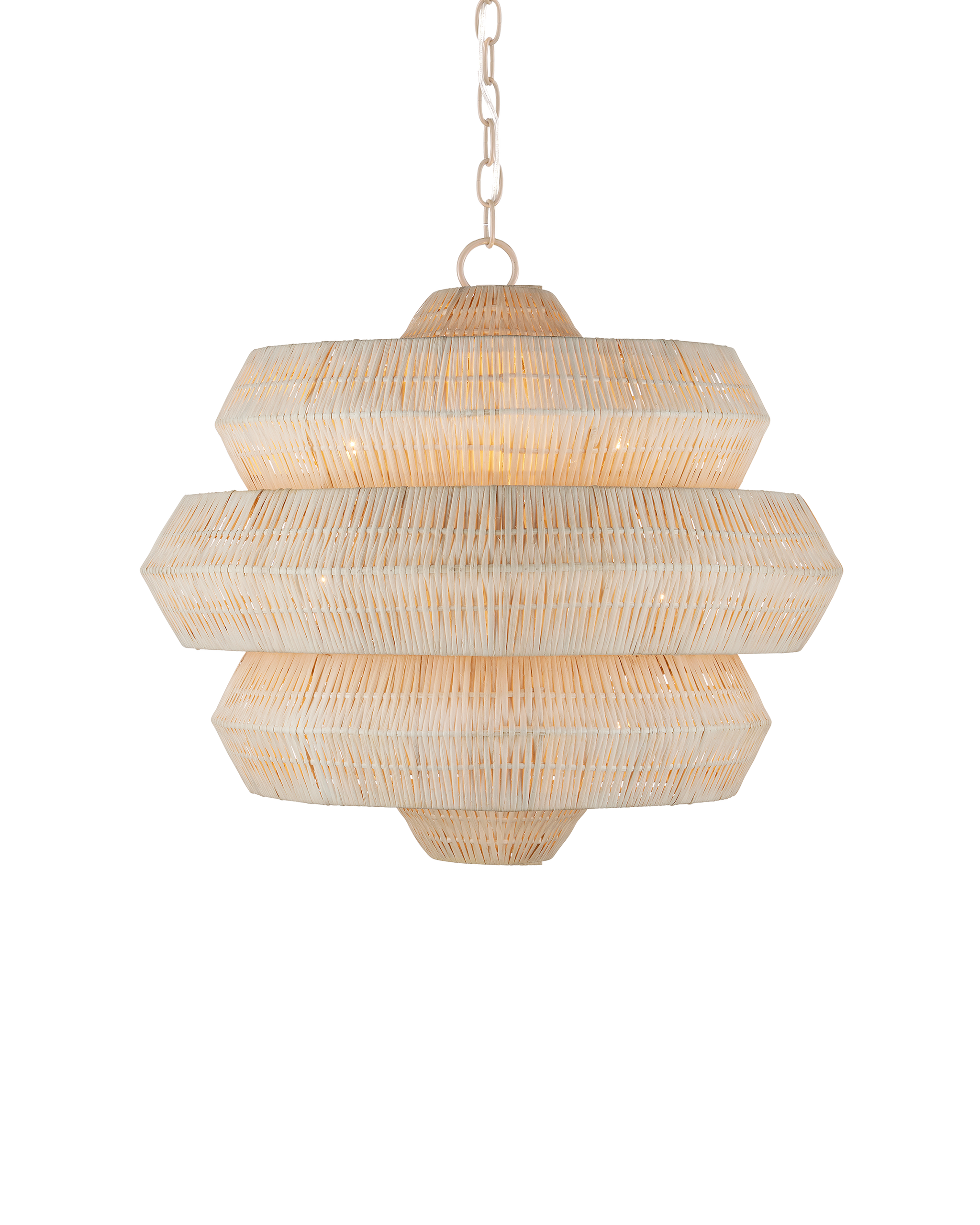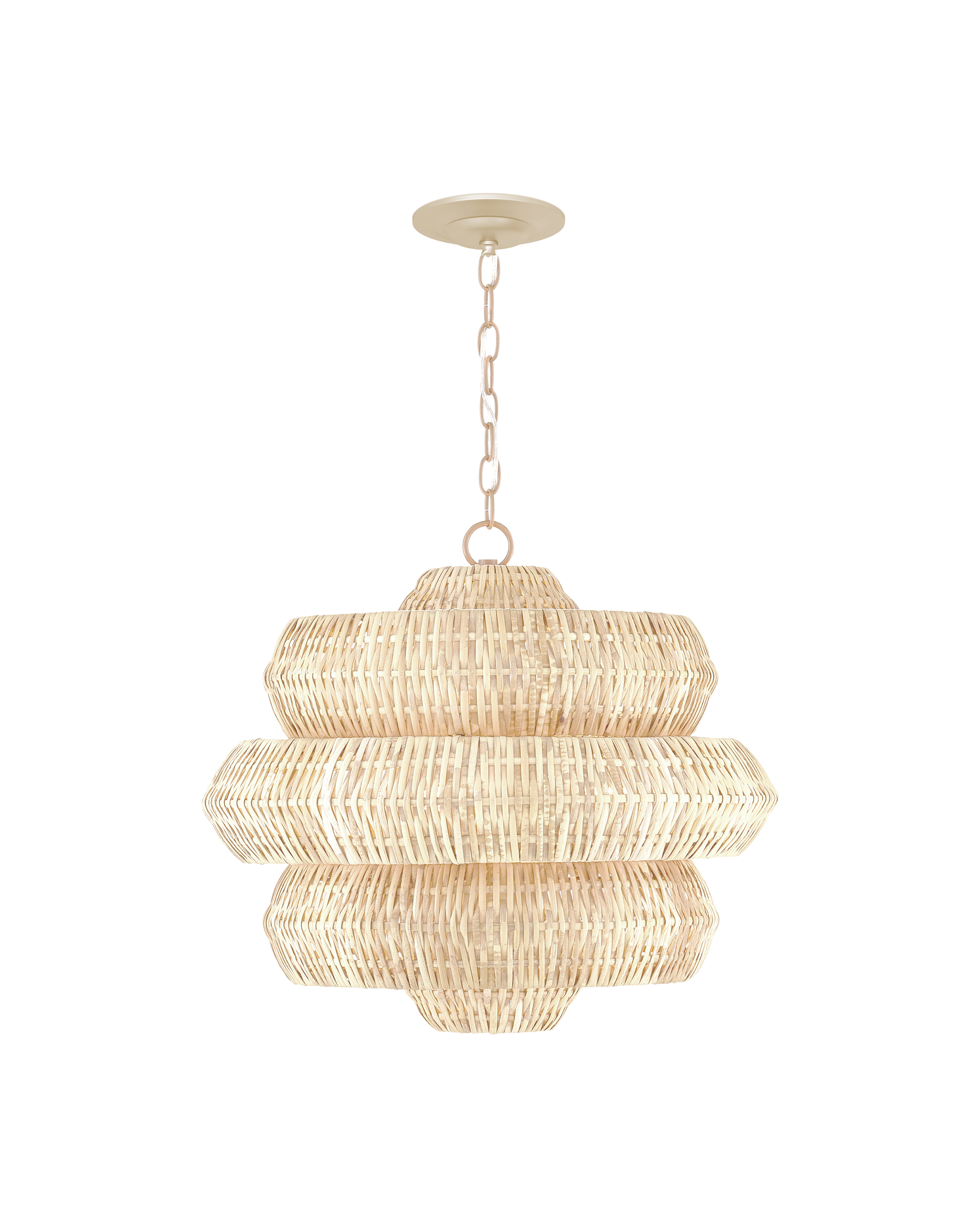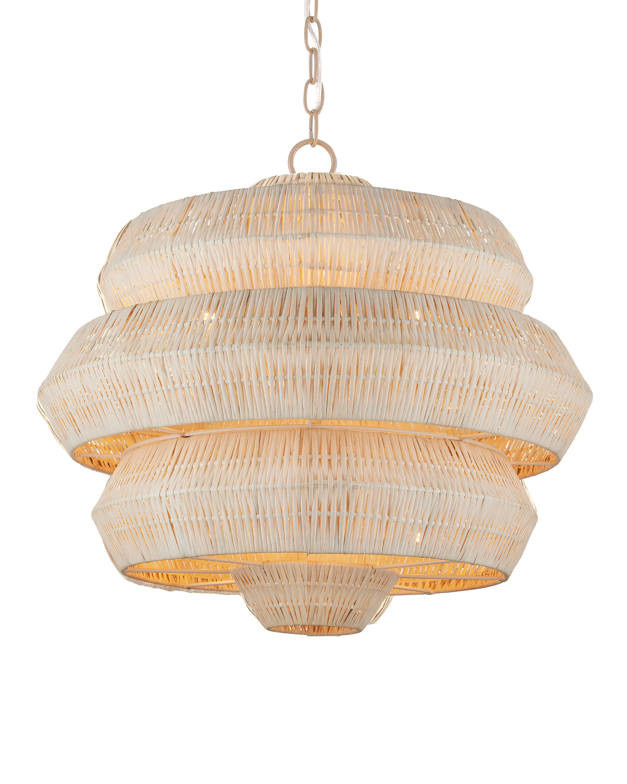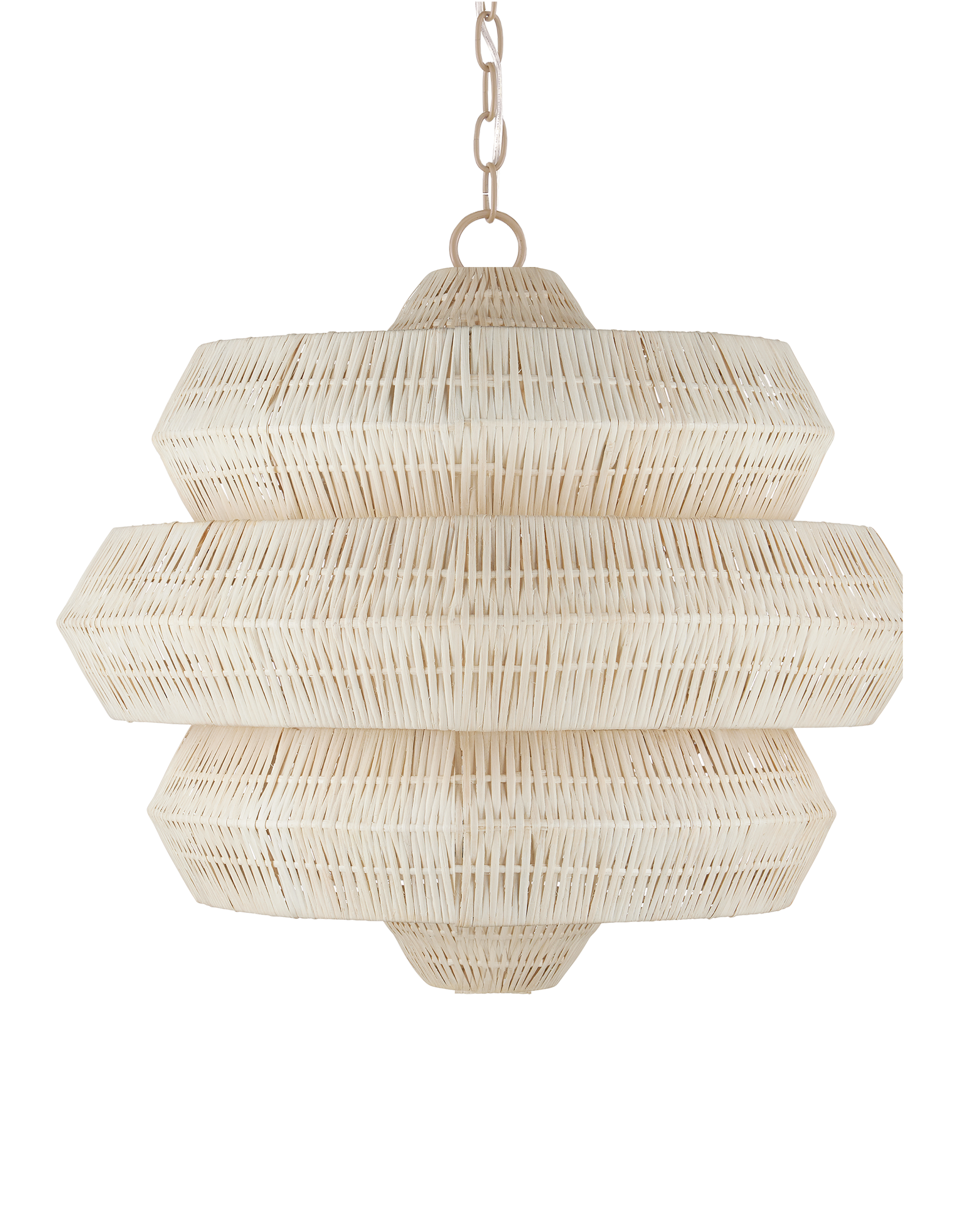 • Painstakingly woven by artisans who use traditional techniques, the Antibes Small White Chandelier is a marriage of artistry and high-quality construction. Natural bleached rattan forms the body of this geometric chandelier shaped by a wrought iron frame in a snow-white finish. This is a petite chandelier at 22.5 inches in diameter. The three lights reflect through the tight weave to create subtle patterns when the chandelier is illuminated. Adjustable from 26.5" to 94.5" with use of included chain/rod kit/cable. If your space calls for a longer drop, additional chain/rods/cable is available for purchase.