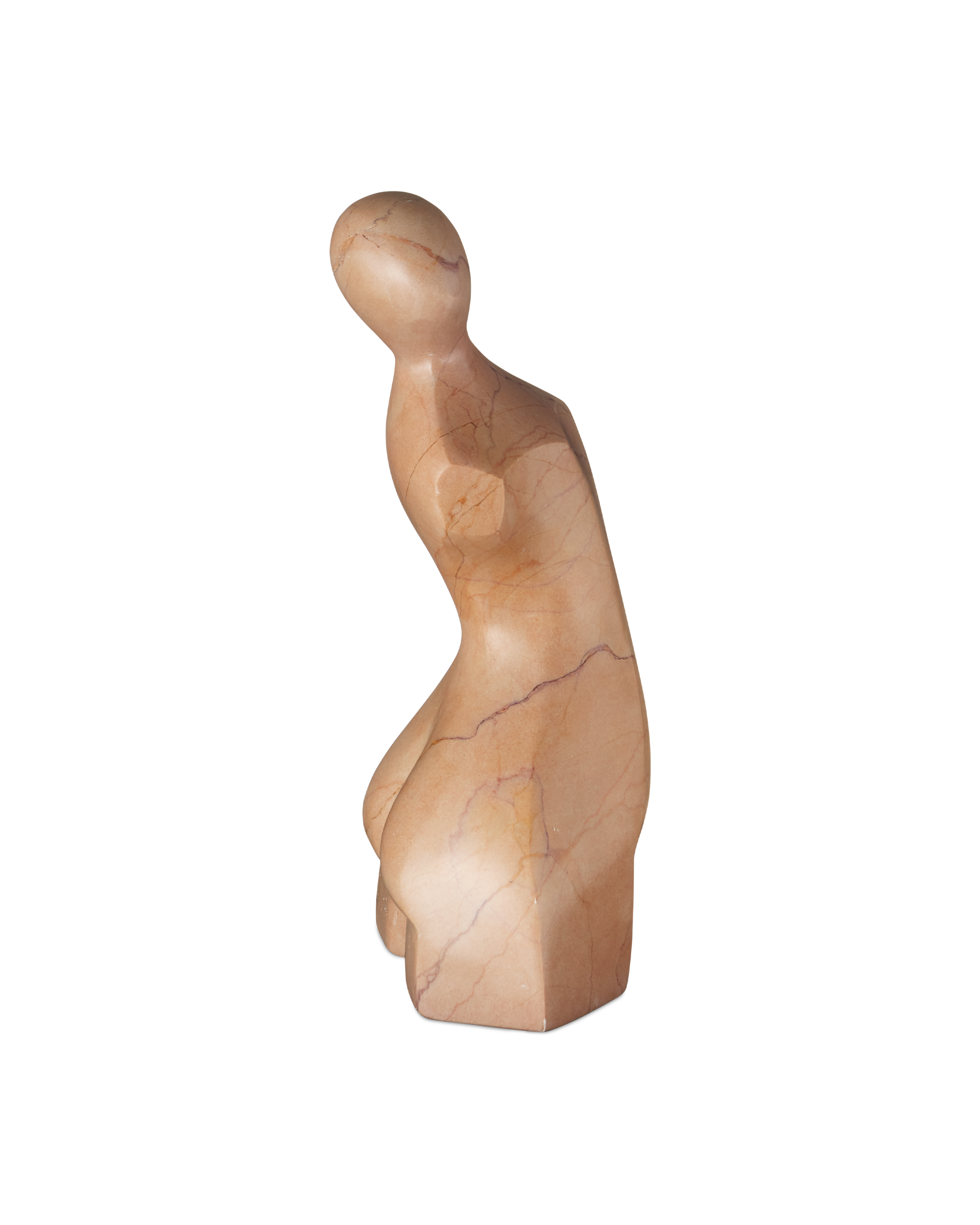 • The Giada Rosa Large Bust Sculpture is crafted from Rosa Cappuccino marble. Its soft pink torso has darker and lighter veining that crisscrosses it to bring it the feel of an antique piece. The clean, pared down lines of the implied body contrast the voluptuous form. This pink sculpture, which will vary slightly given it is made of natural stone, stands almost 9 inches tall.