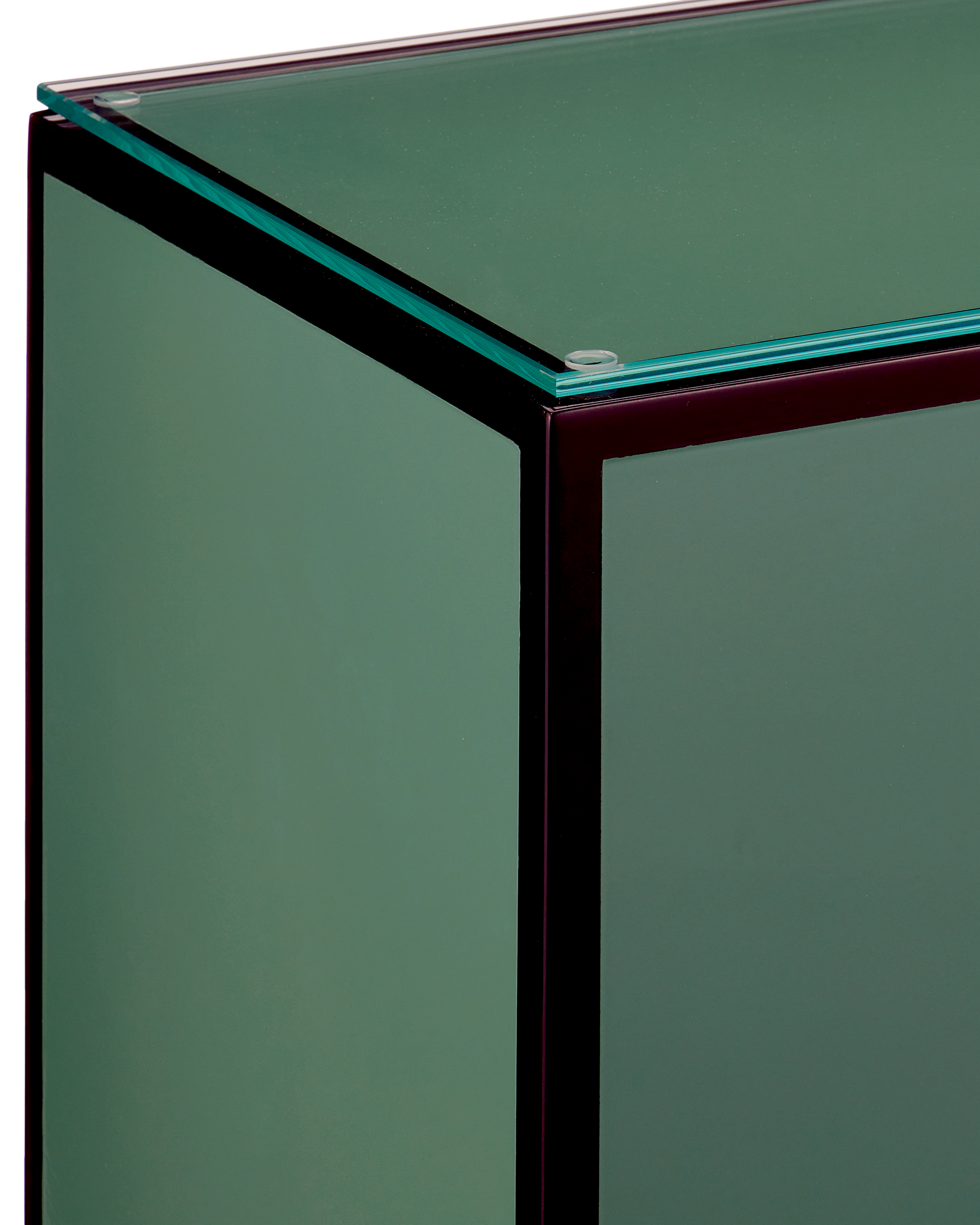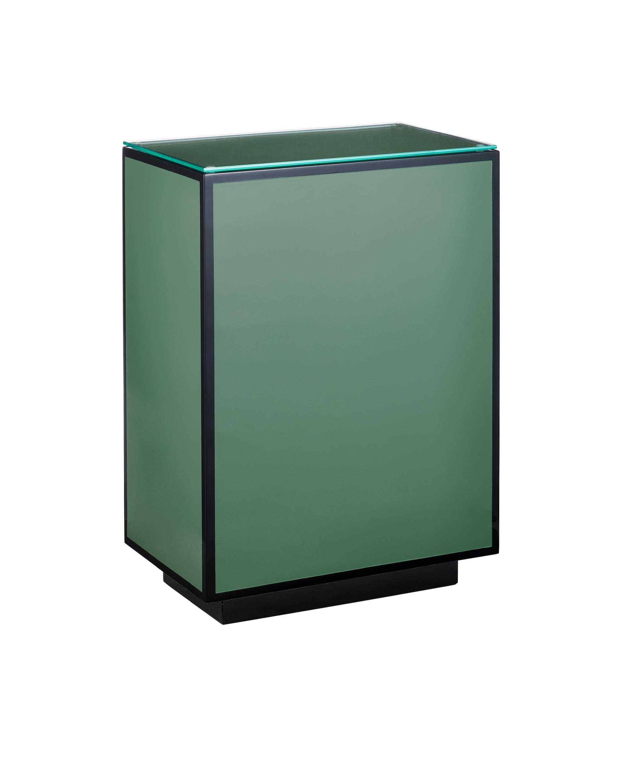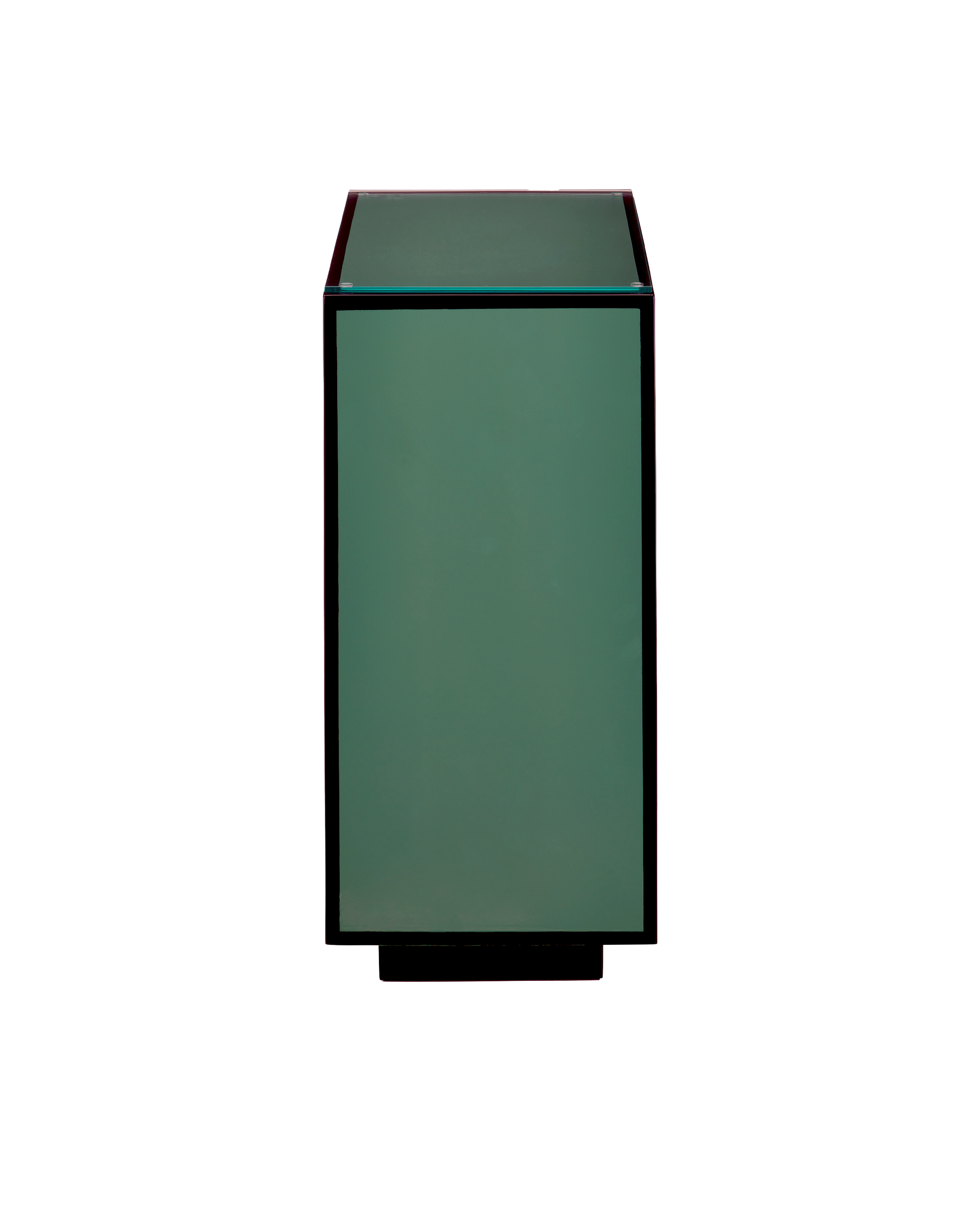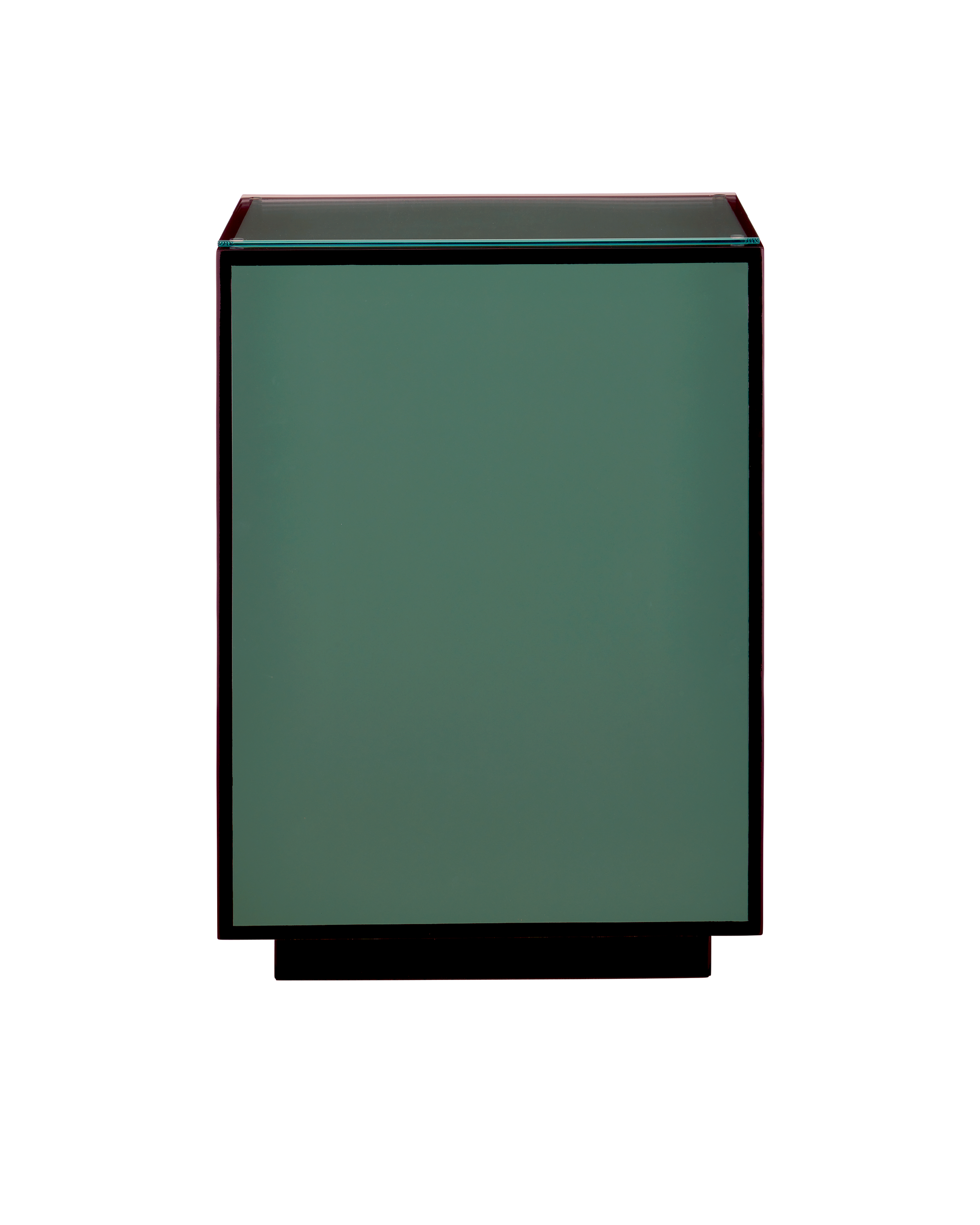 • Nothing beats the sheen of lacquer where decorative elements are concerned, as is evident in the sleek surfaces of the Green Lacquer Side Table. Made of wood, the accent table has been covered in the time-honored lacquer process. The luxe green surfaces are rimmed in rich black, and the top is fitted with a square of tempered glass. The plinth base is a design feature of note.