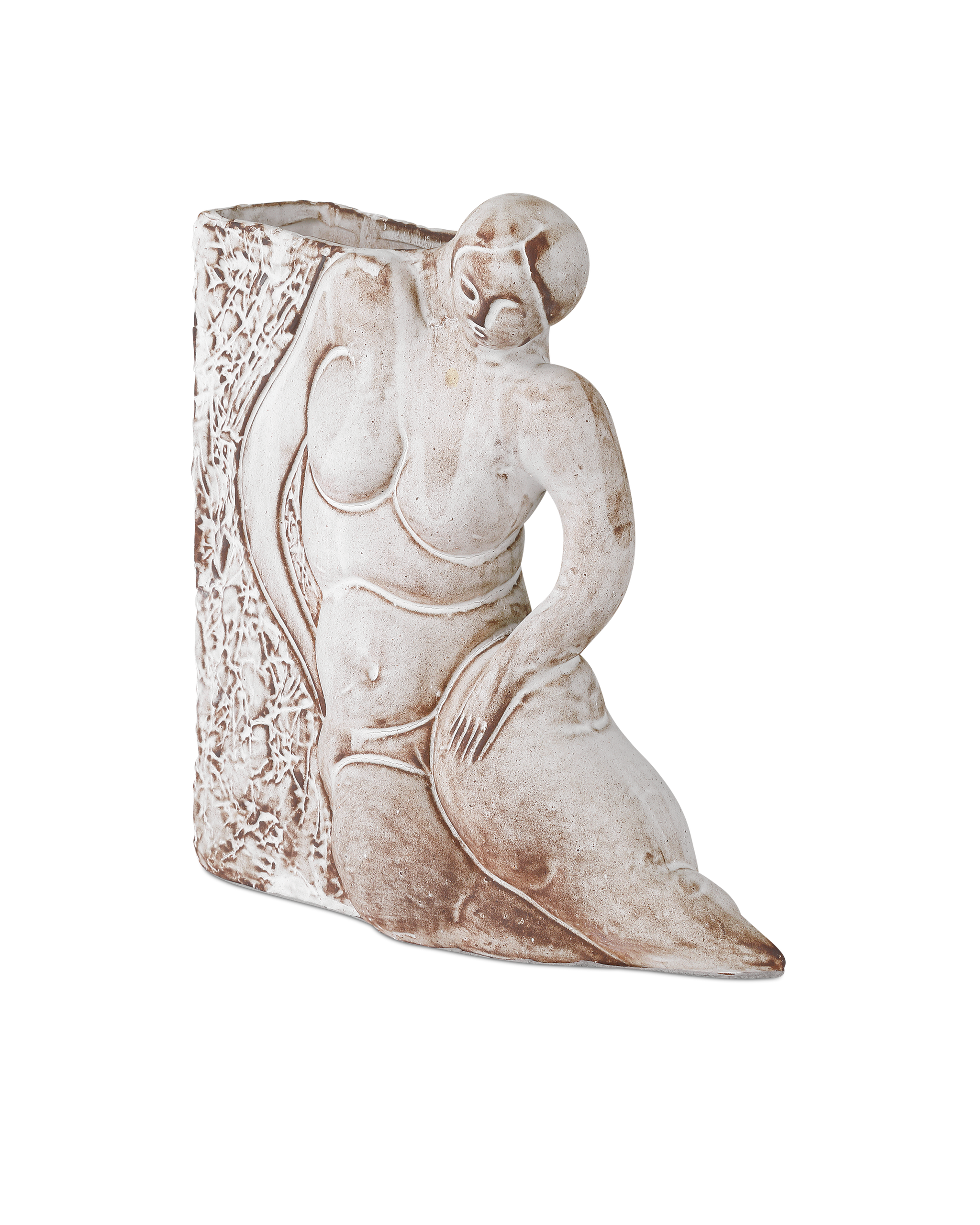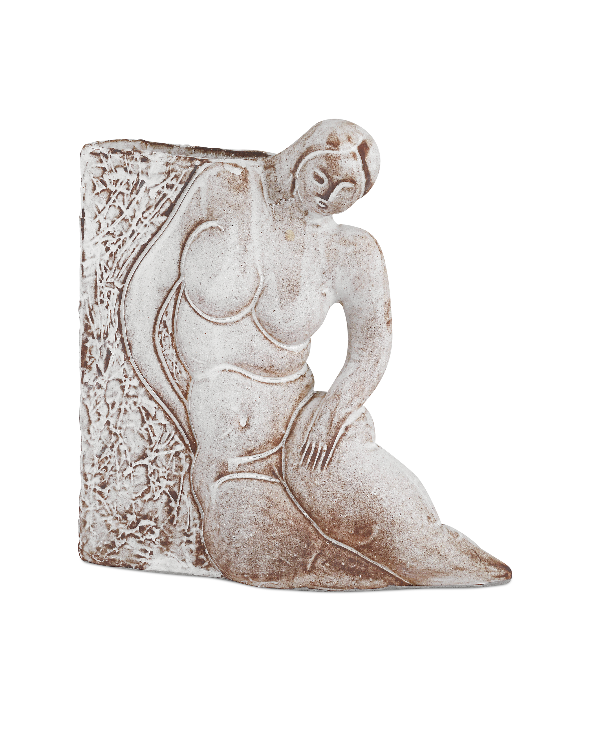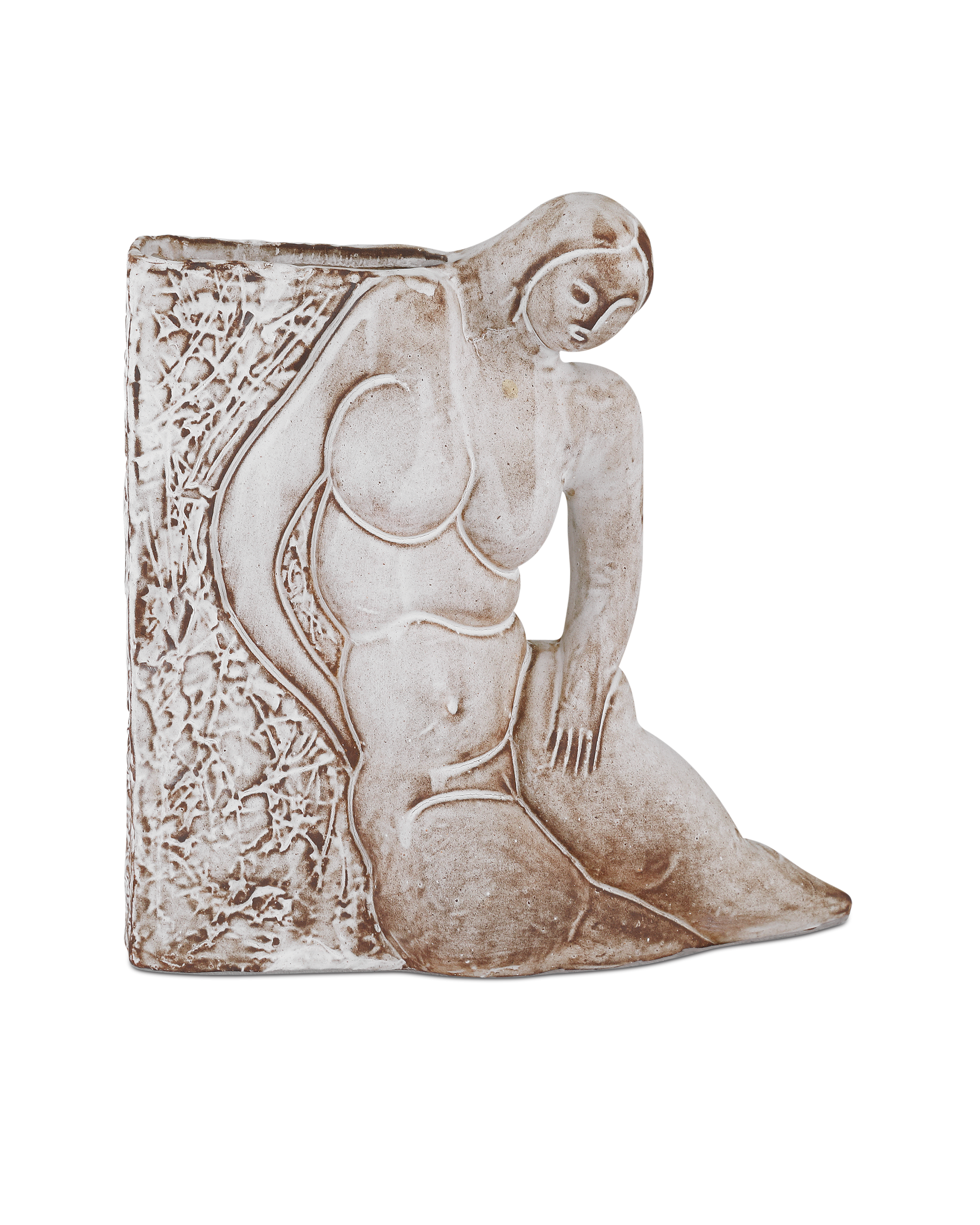 • The Paramour Vase was inspired by the artistry of Henri Matisse. Made of porcelain, the expressive woman leaning into the vessel has a figure that feels as if it is moving. A white glaze is artfully applied so that it is thicker in some places than others to create a feeling of great texture.
