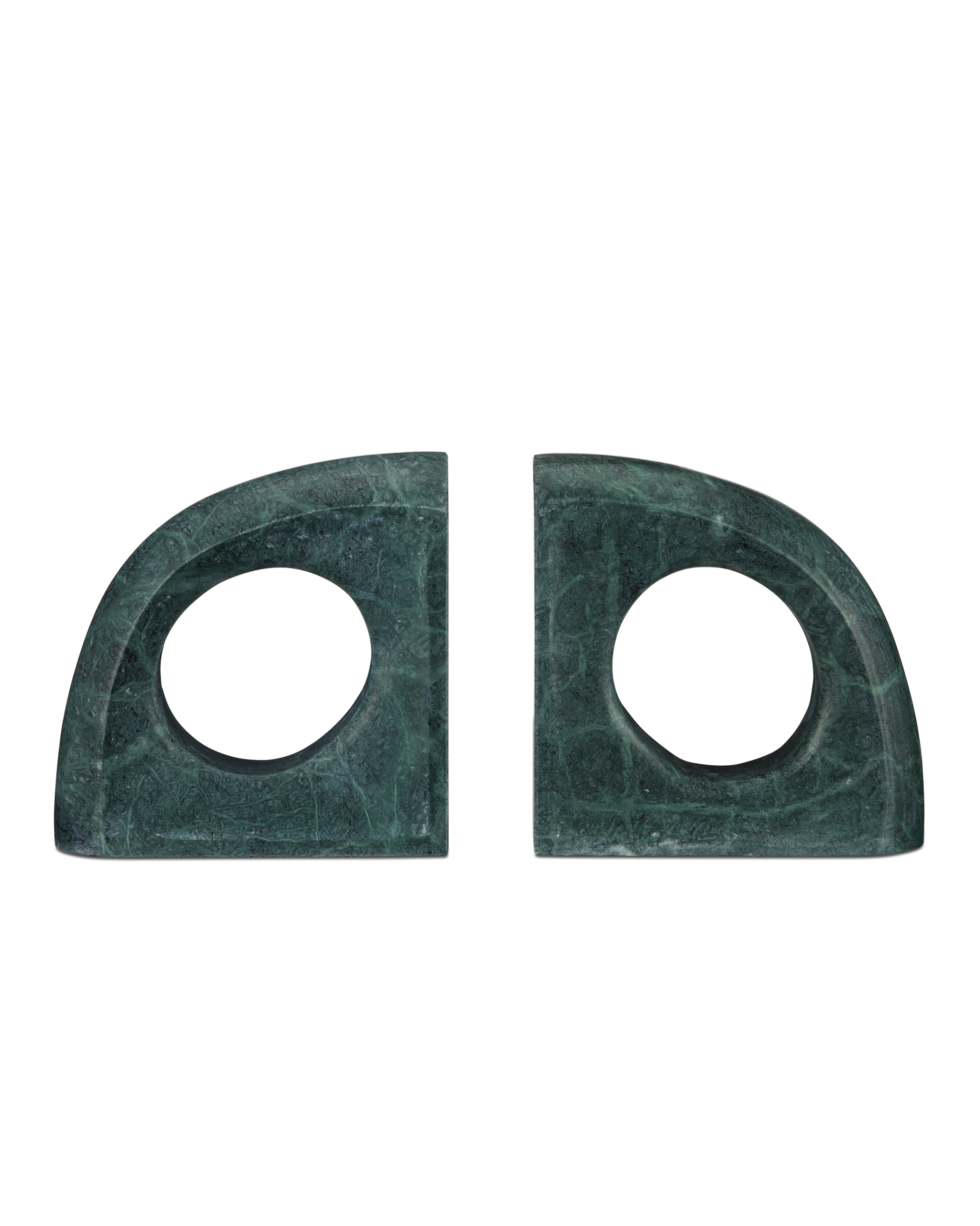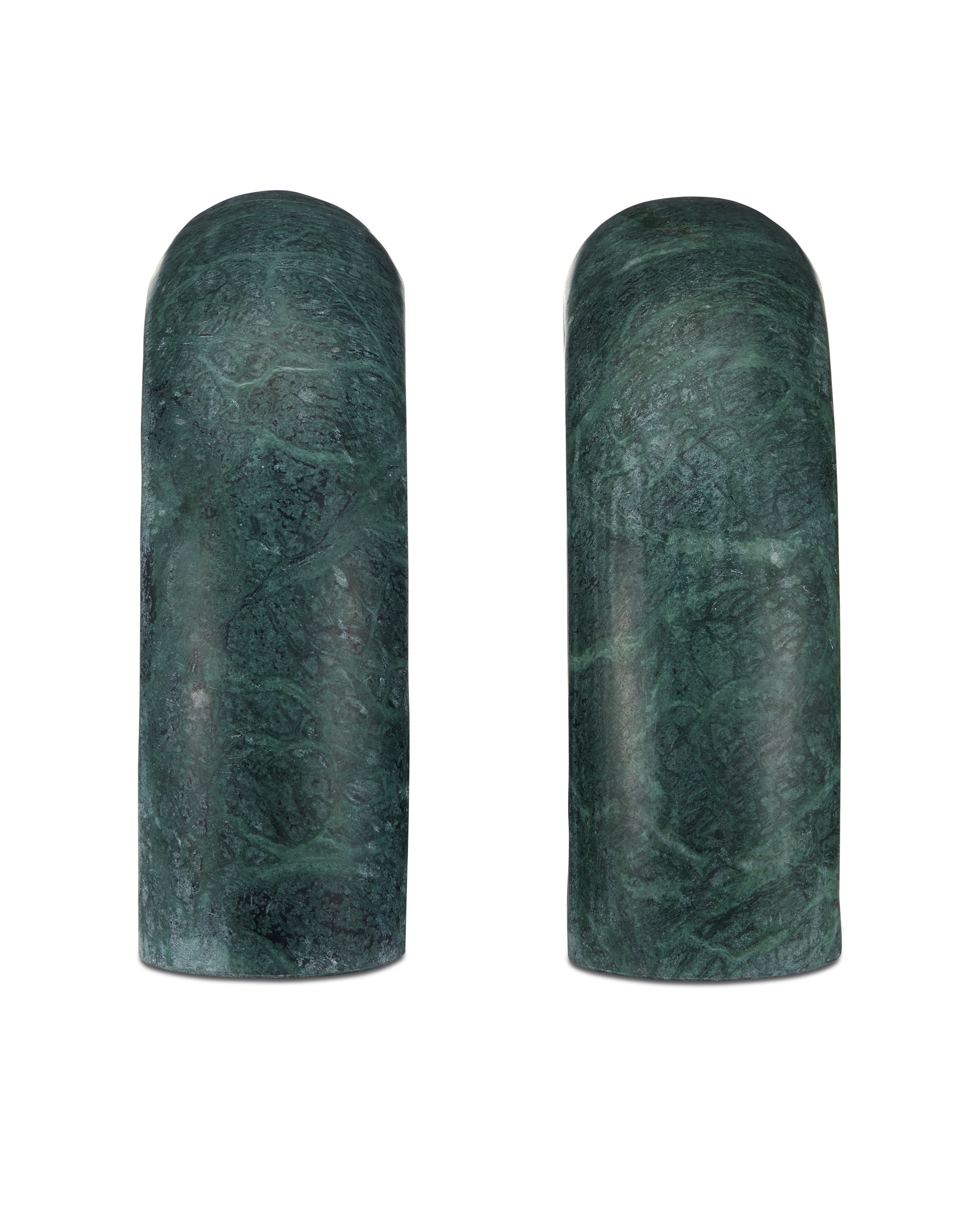 • The Russo Green Object Set includes two marble sculptures that are versatile decorative accents; they will stand on their own as sculptures or will make excellent bookends. Because the pieces are made of natural marble, the veining of each will be slightly different, making each one unique.