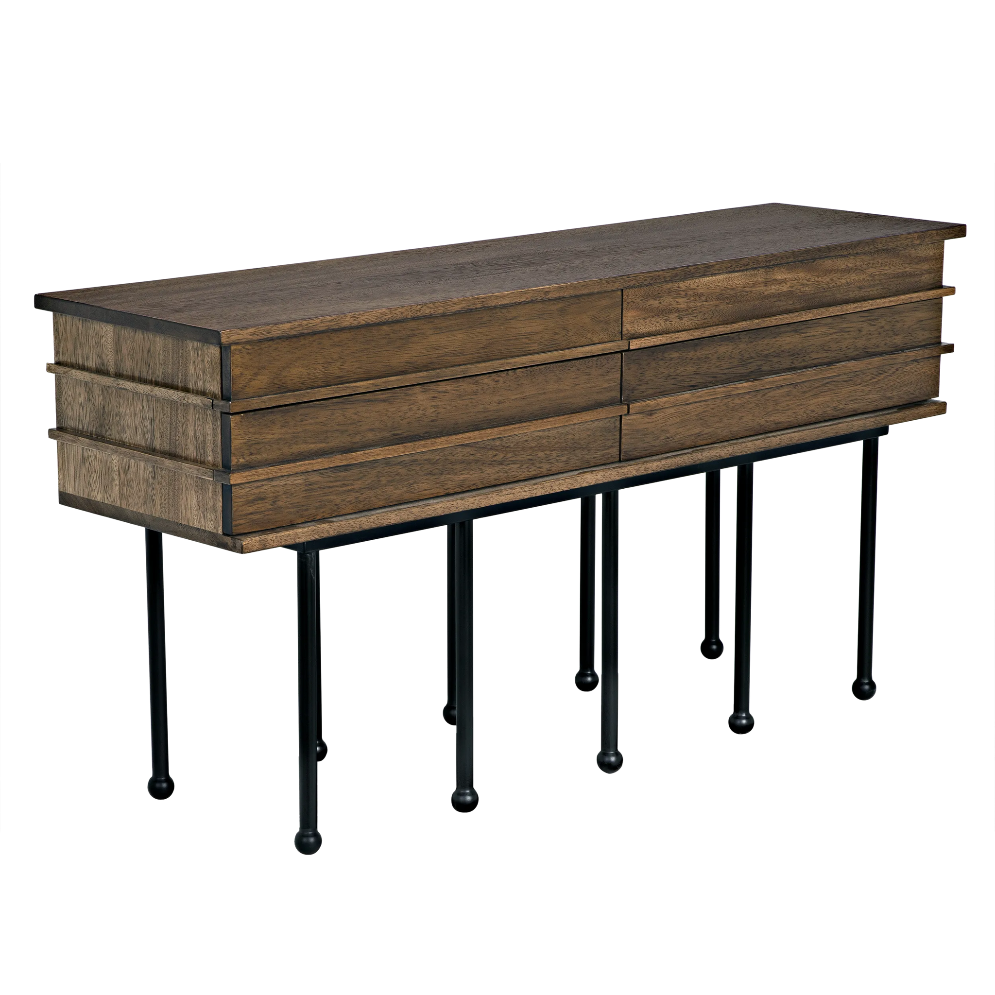 Featuring four drawers, the Oliver Console stuns with simplicity. Bold, linear lines act as both a graphic aesthetic and functional handles. Dramatic iron tubular legs end in ball feet for an updated take on post modern design.