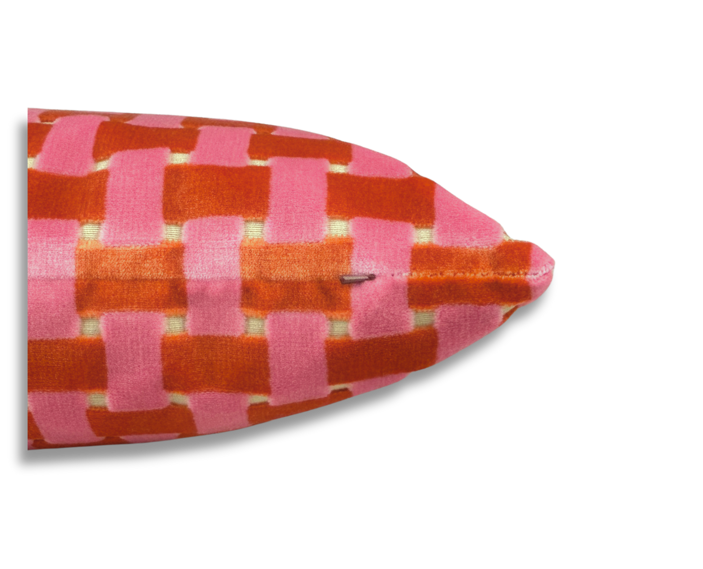 Add a fun and playful pop of color to any room with this cut velvet pillow. The basket weave pattern adds a touch of elegance to your space, making it the perfect statement piece. With an identical front and back, this pillow will look good from any angle.