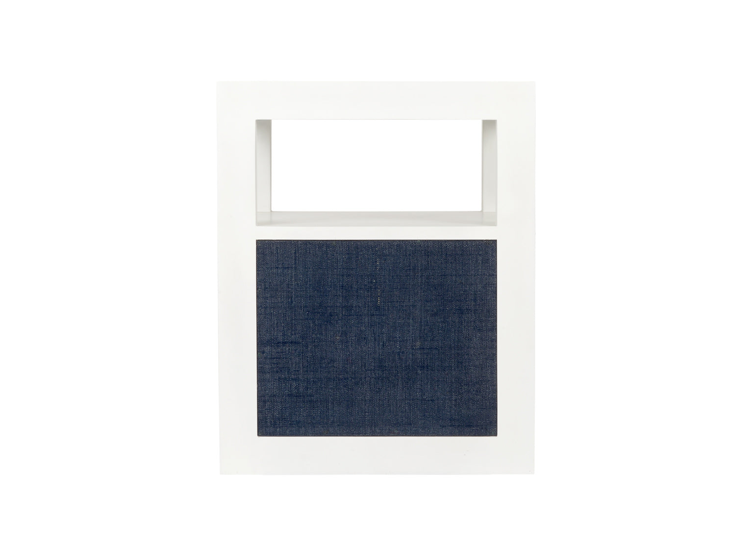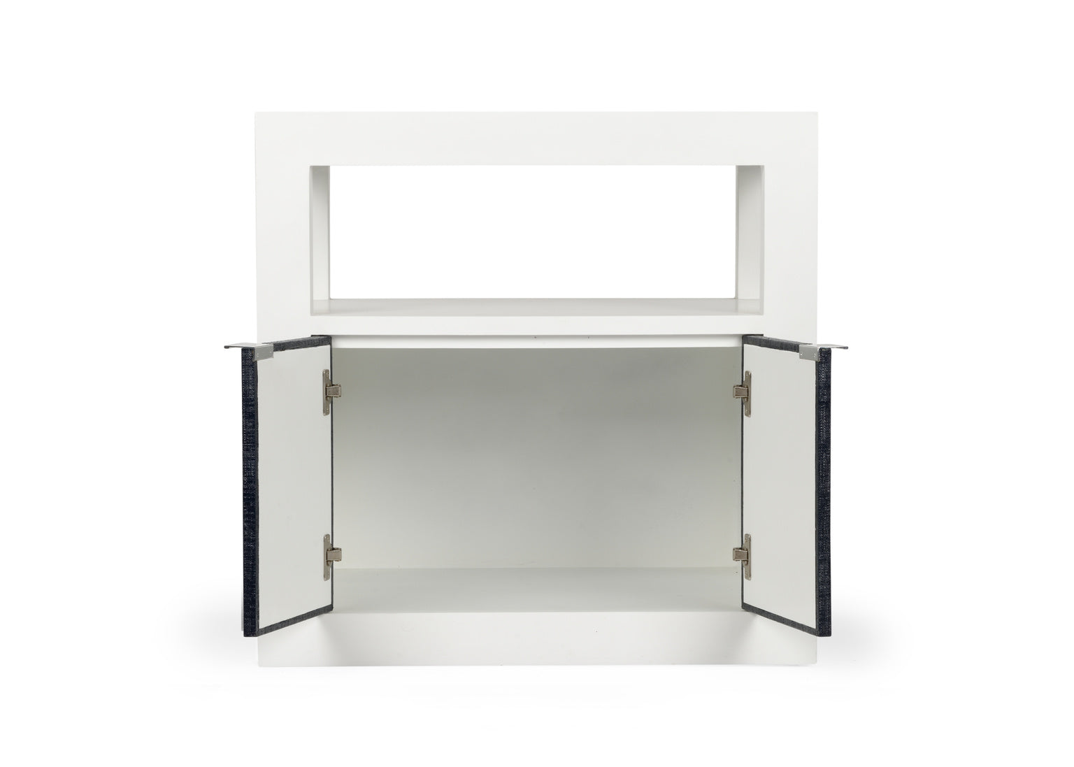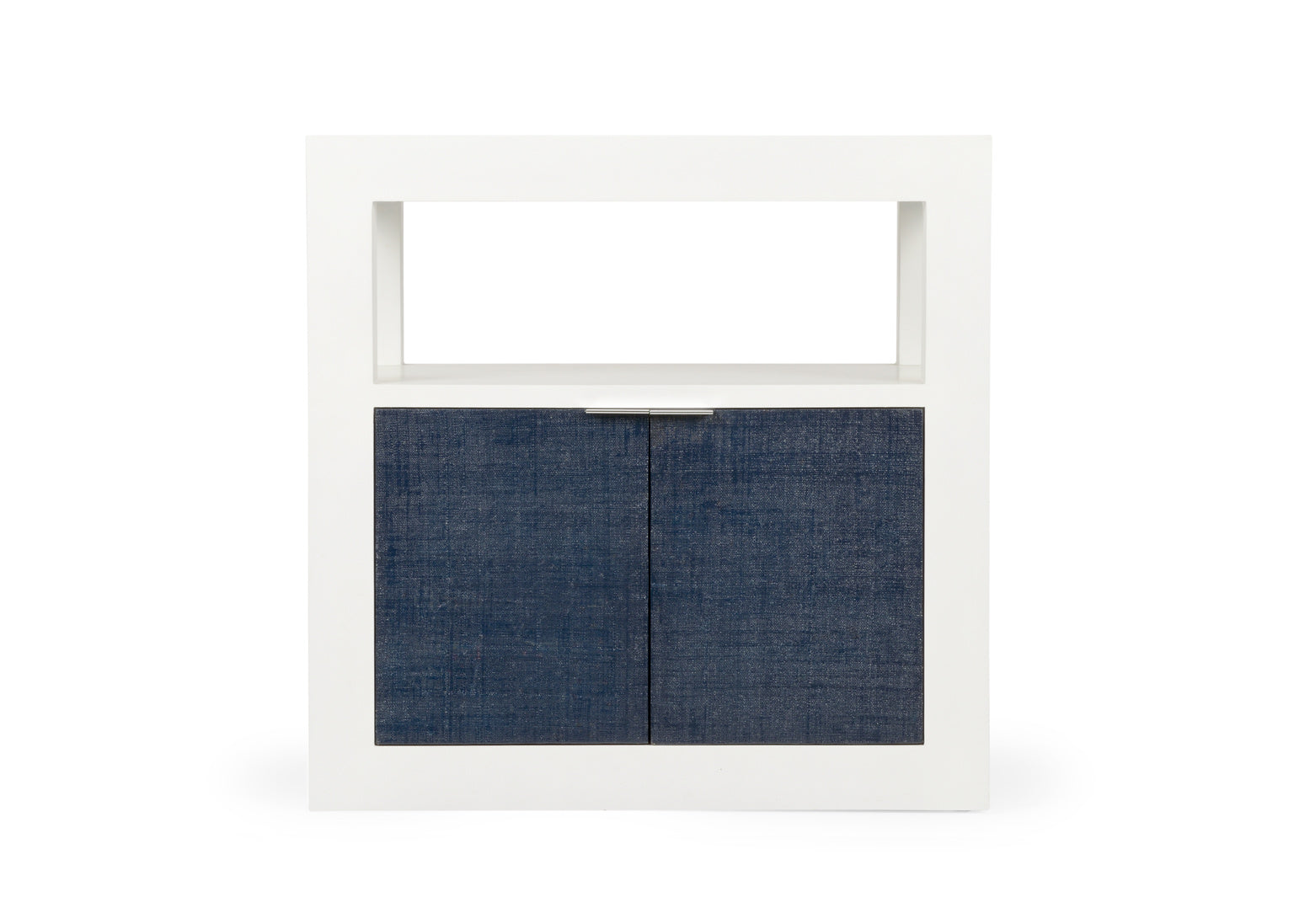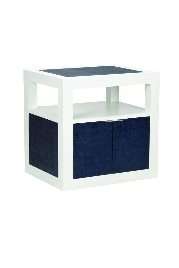 • Bring both style and functionality to your space with this chic side table, featuring a navy grasscloth top and sides that add a touch of texture and elegance. Behind its two doors, this table offers ample hidden storage, making it perfect for keeping your space tidy and organized. Whether placed in a living room or bedroom, this versatile side table effortlessly blends beauty with practicality, making it a standout addition to any home.