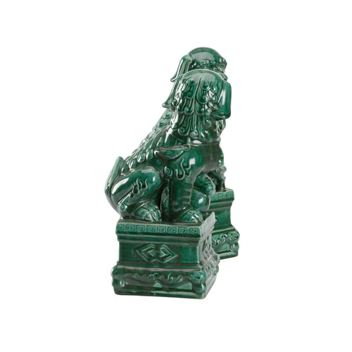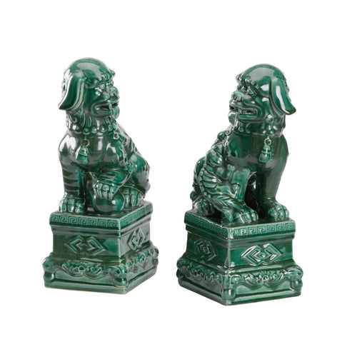 • Known in ancient asia as guardians of the palace, foo dogs or chinese guardian lions ward off evil and symbolize prosperity for the future. On tabletops or in bookcases, this pair of green glazed foo dogs will add color and tradition into any decor.